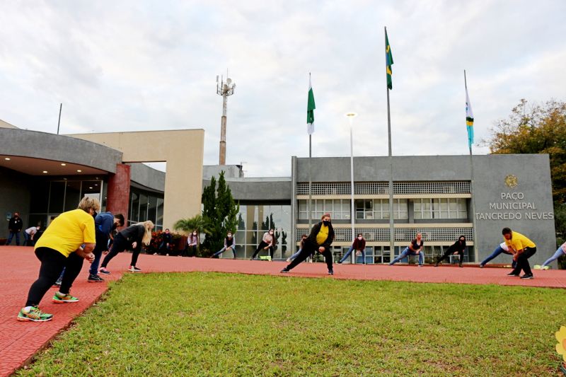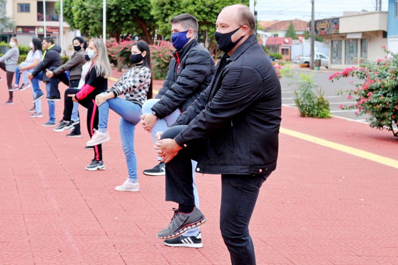 ação que contou com 15 minutos de alongamento e polichinelo. Desenvolvida pelo