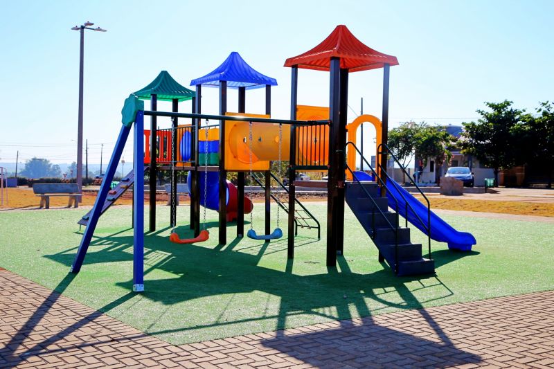 estacionamento, pista para caminhada, parque infantil com playground.