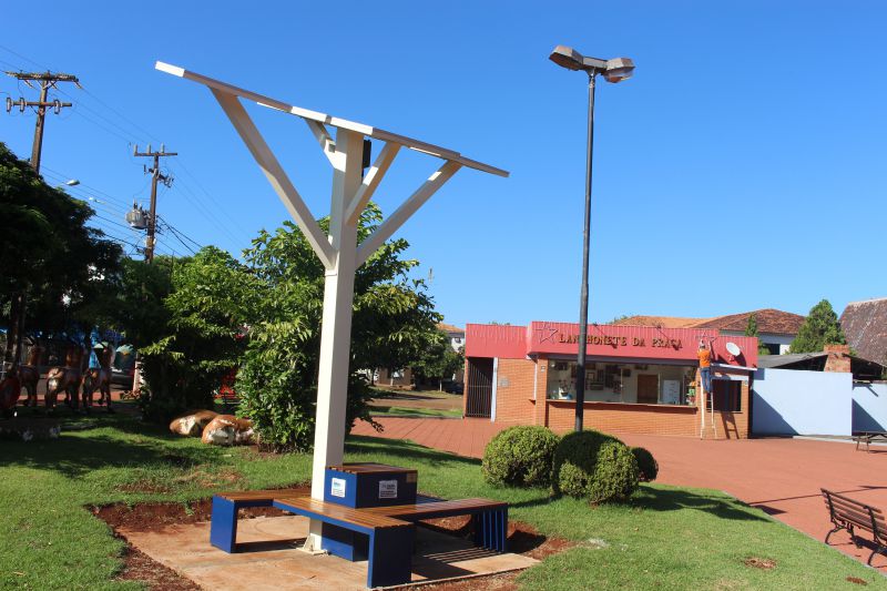 O projeto árvore solar digital é uma parceria do Conselho dos Lindeiros, municípios e Itaipu Binacional. Feita com tecnologia sustentável, capta a radiação do sol em cinco painéis fotovoltaicos disponibilizando para o carregamento de celulares, com funcionamento de 24 horas por dia.