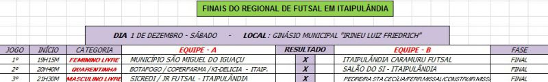 Nessa semana foram definidos os finalistas do XV Regionalito de Itaipulândia em todas categorias. No quarentinha a final será entre os dois times de Itaipulândia.
