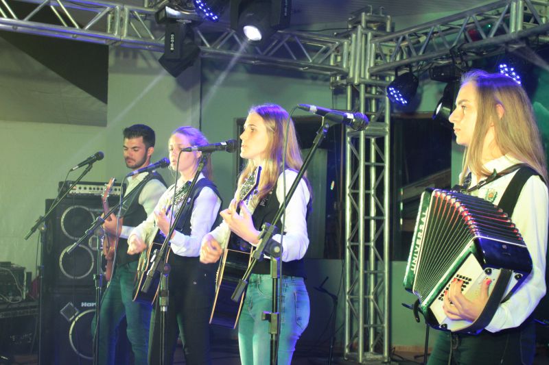 No sábado, o grupo Corda e Fole, de Serranópolis do Iguaçu, realizou uma bela apresentação, brindando público presente. Logo depois, foi a vez da dupla sertaneja, Vanessa e Liriel, subirem ao palco e alegrar a noite de Itaipulândia.