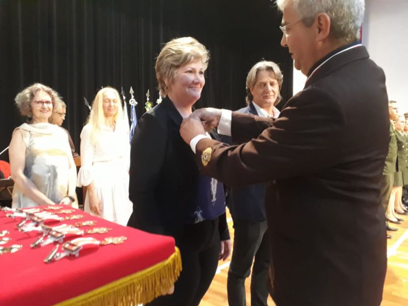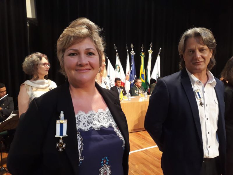 A prefeita Cleide Prates participou de um evento na sexta-feira (30) em Cascavel, no Teatro do Centro Universitário da Faculdade Assis Gurgacz, onde autoridades civis e militares foram condecoradas, recebendo medalhas por trabalhos extraordinários em suas funções.