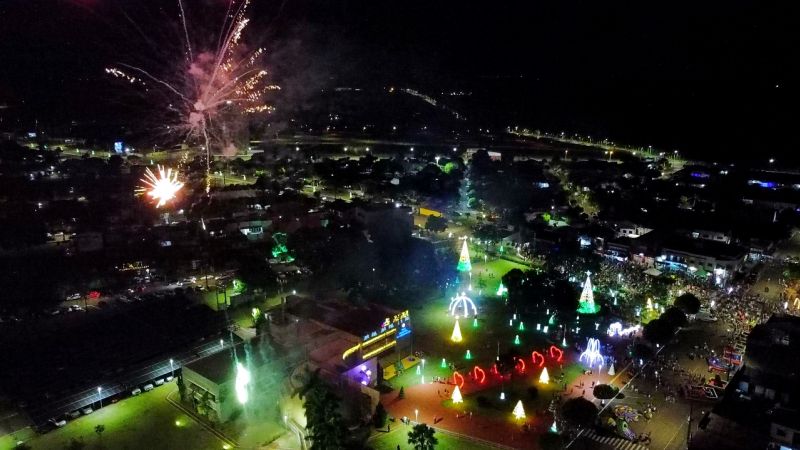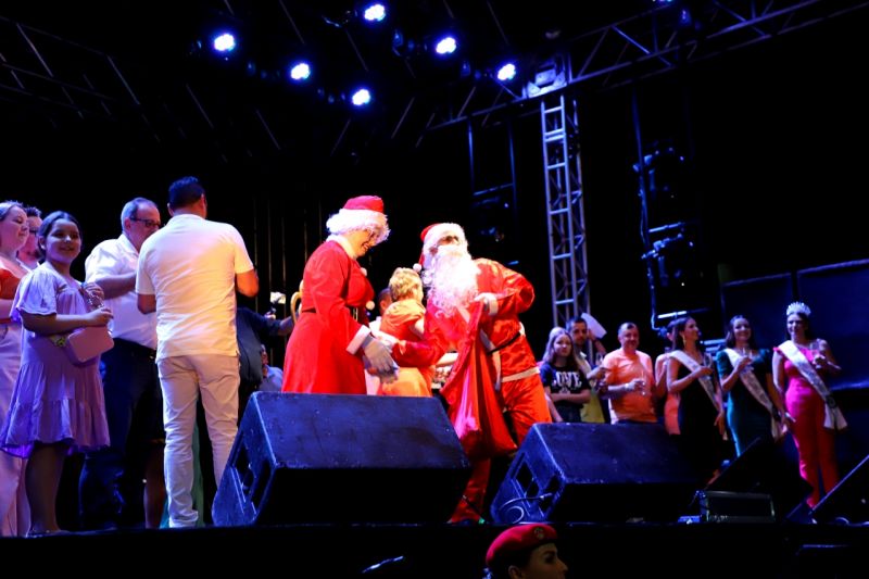 Além da música, um espetáculo de fogos de artifÃcio iluminou os céus, acompanhado pela presença do Papai e Mamãe Noel, marcando a abertura do Natal Iluminado de Itaipulândia. Um verdadeiro show de luzes e cores envolveu toda a cidade, encantando moradores e visitantes.