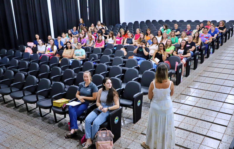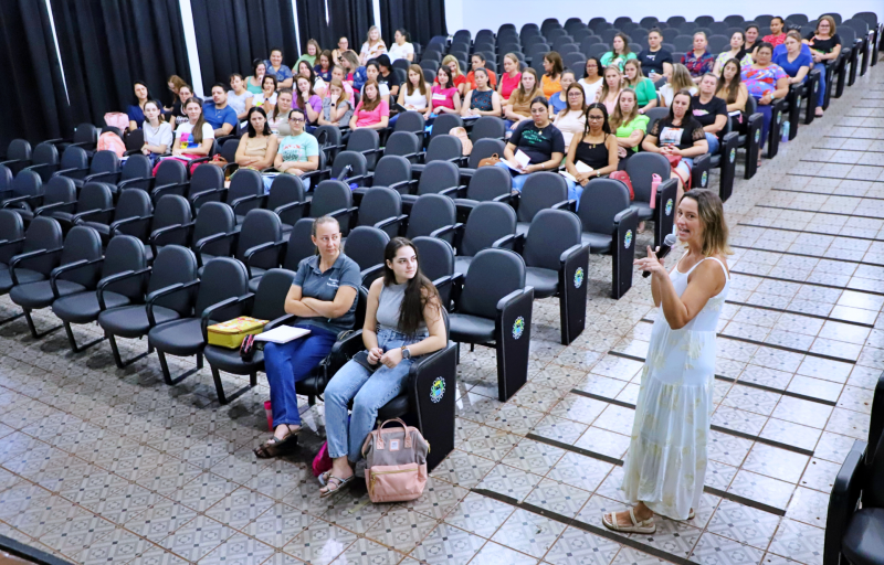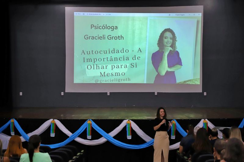 Na abertura houve a apresentação das equipes que compõem o corpo educacional do municÃpio e a formação sobre "Autocuidado: a importância de olhar para si mesmo - Harmonizando Saúde FÃsica e Emocional para uma Carreira Sustentável", ministrada pela renomada Psicóloga Gracieli Groth.
