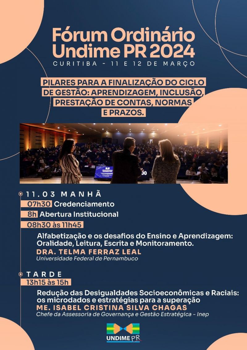 O Fórum teve como objetivo principal a abordagem: Pilares para a finalização do ciclo de gestão: Aprendizagem, inclusão, prestação de contas, normas e prazos.