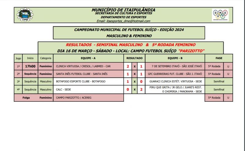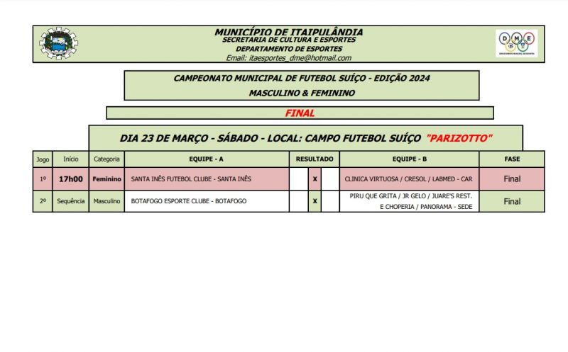 feminino tendo como local o Campo do Parizotto e assim definiram-se as equipes