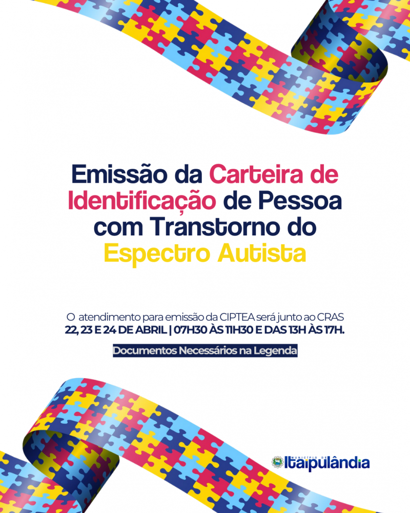 nos dias 22, 23 e 24 de abril de 2024, serão emitidas as CIPTEA - Carteiras de