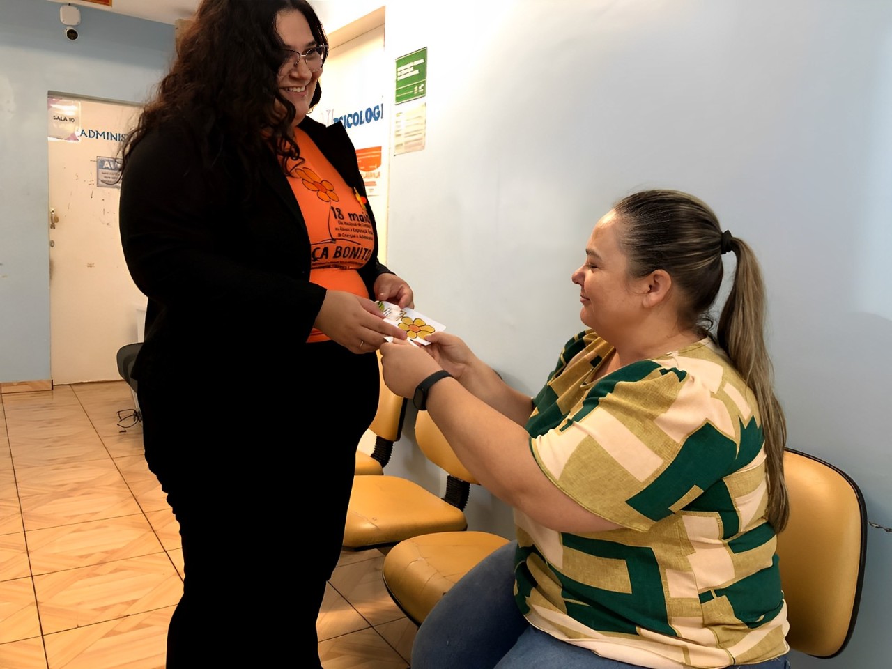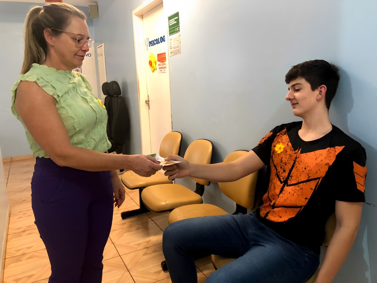 No dia 23 de maio, quinta-feira, a equipe eMulti desenvolveu atividade junto ao Posto de Saúde Central Geni Terezinha Basso, referentes ao 18 de Maio, ainda na programação do Maio Laranja, mês dedicado ao combate ao abuso e exploração sexual infantil. Na ocasião foram distribuímos imãs de geladeira e adesivos para carros relacionados ao tema, e exibição de vídeos. A equipe realizou uma breve intervenção coordenada por Bruna Lopes, estagiária de psicologia, em conjunto com a equipe e a coordenadora da equipe, Ilóides Seidel.