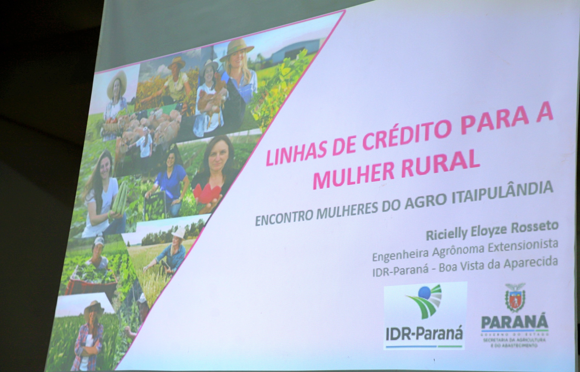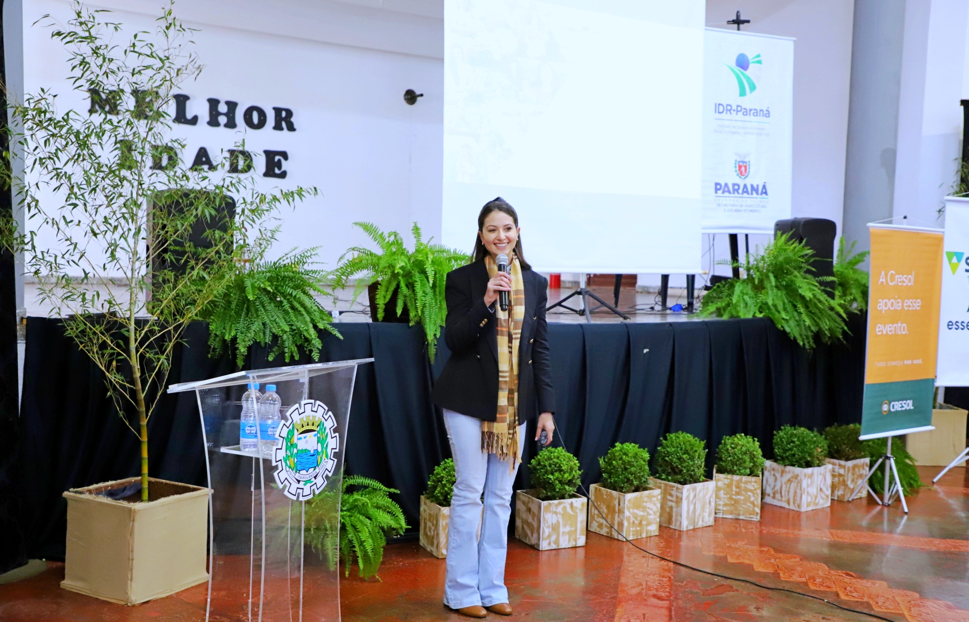 Ricielly Eloyze Rosseto, engenheira agrônoma do IDR-PARANÁ, apresentou sobre linhas de crédito para mulheres rurais, enquanto Elis Carla Colombi, produtora rural, compartilhou seu case de sucesso, destacando os desafios e conquistas no empreendedorismo rural.