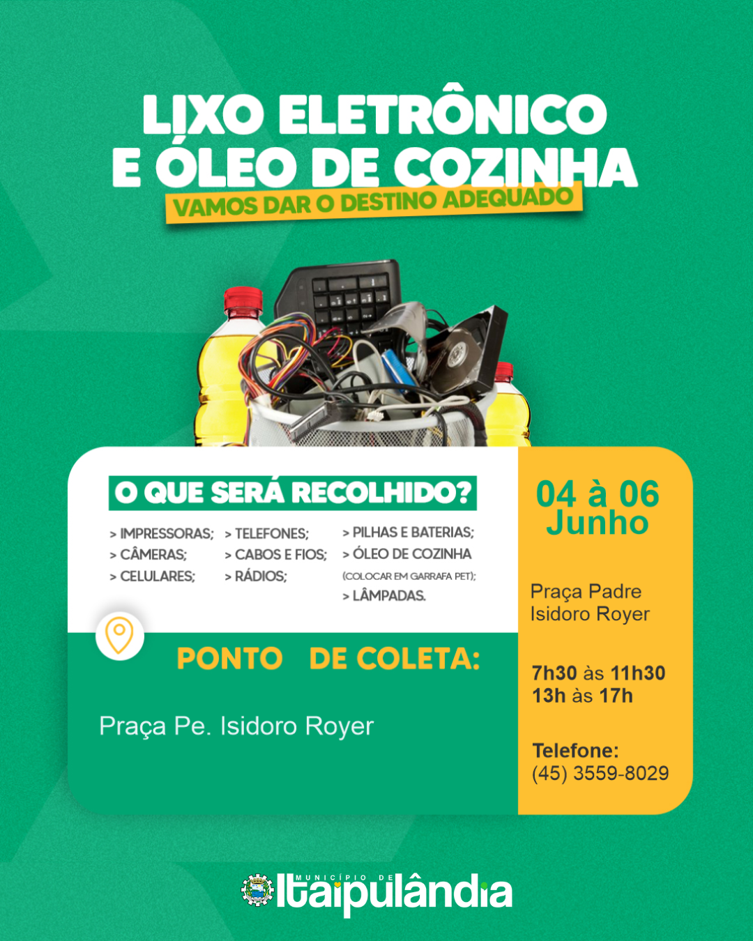 Coleta de Lixo Eletrônico e Óleo de Cozinha na Semana do Meio Ambiente!