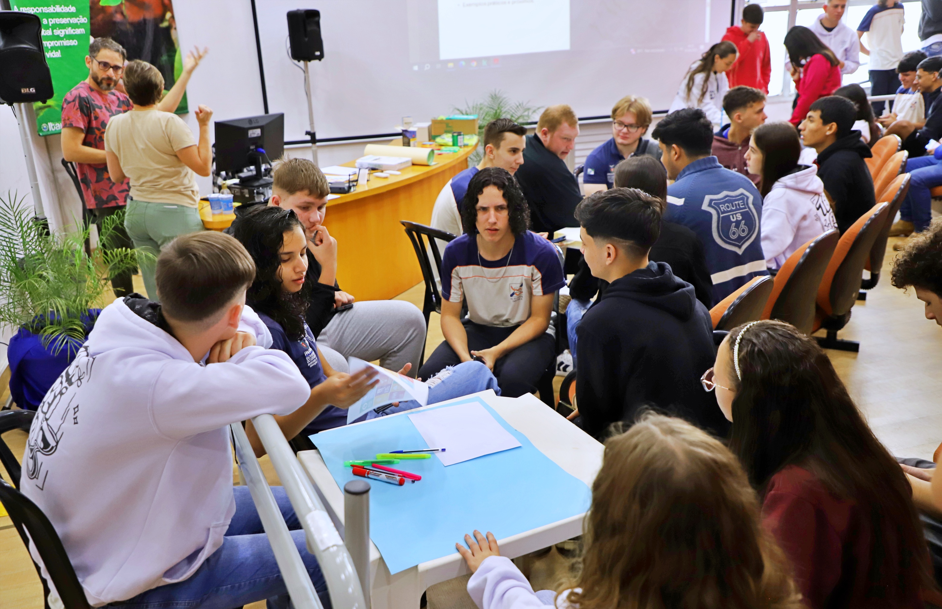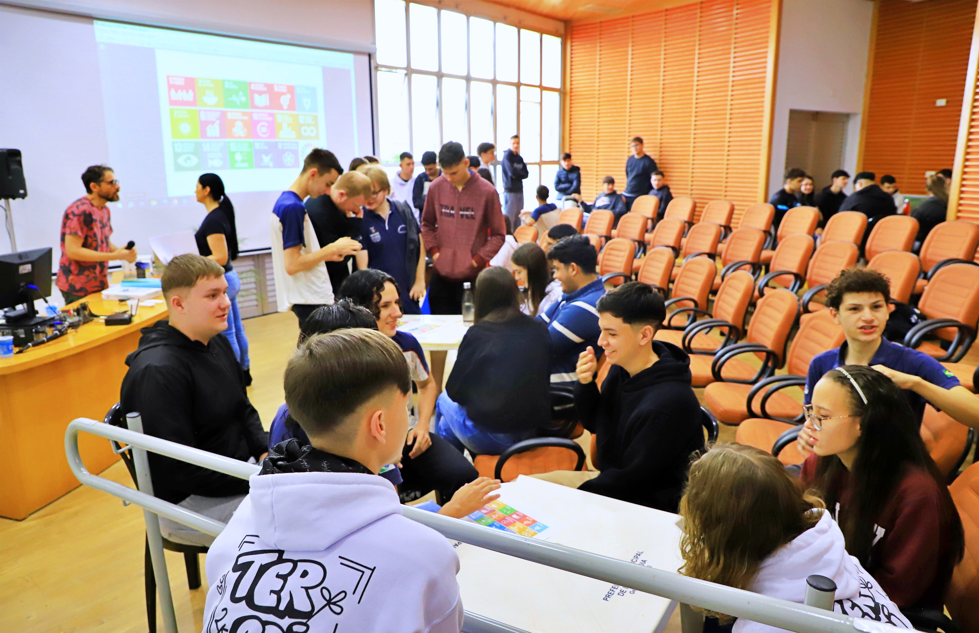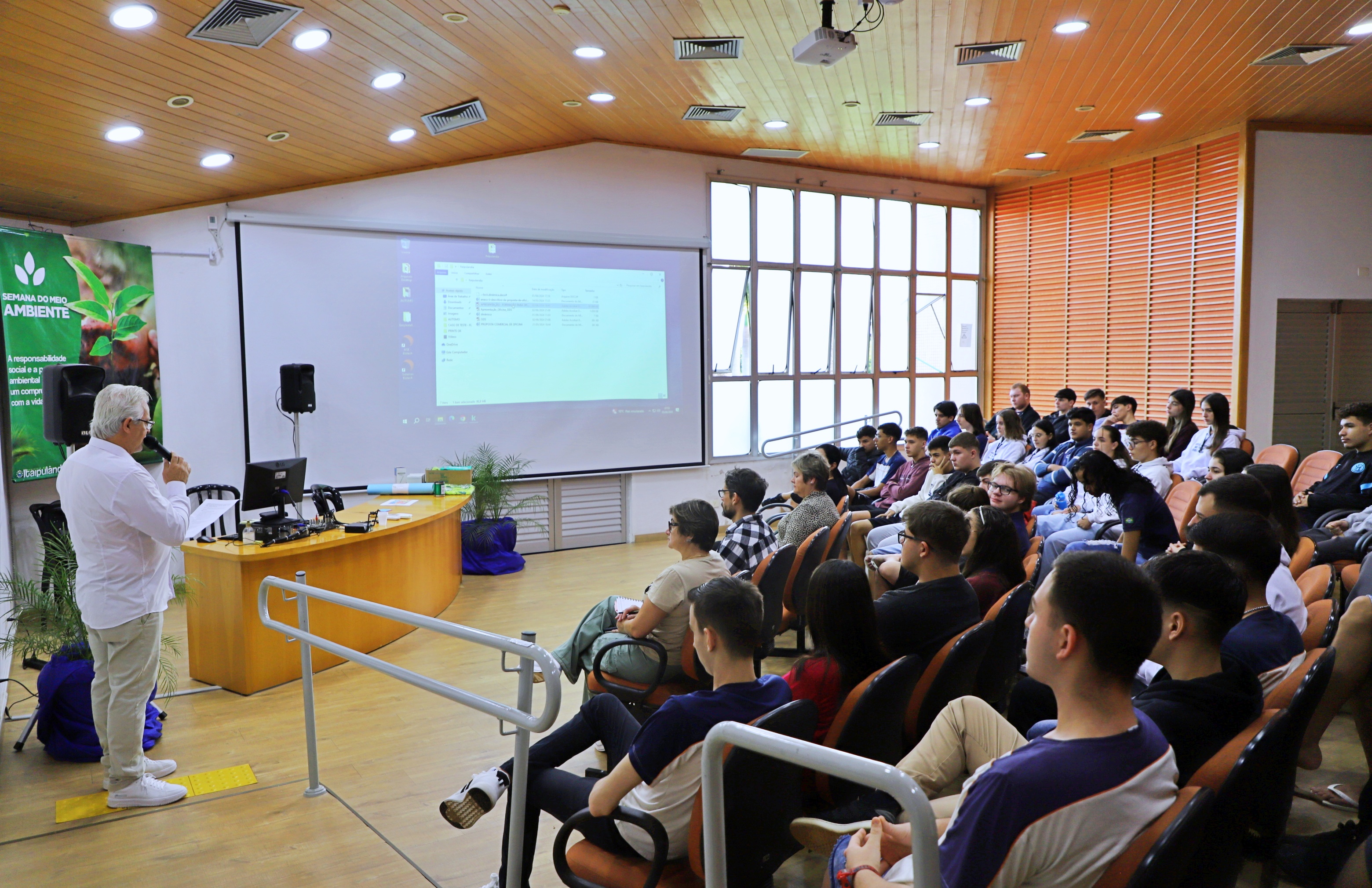 A primeira ação da semana faz parte do Convênio Linha Ecológica: Educação, Cultura e Sustentabilidade, parceria entre a Itaipu Binacional e o Conselho de Desenvolvimento dos Municípios Lindeiros ao Lago de Itaipu, o qual envolveu estudantes do Colégio Estadual Costa e Silva, servidores e interessados em geral, com uma oficina sobre “Objetivos do Desenvolvimento Sustentável”, ministrada pelo educador ambiental Gustavo Federico Apablaza.