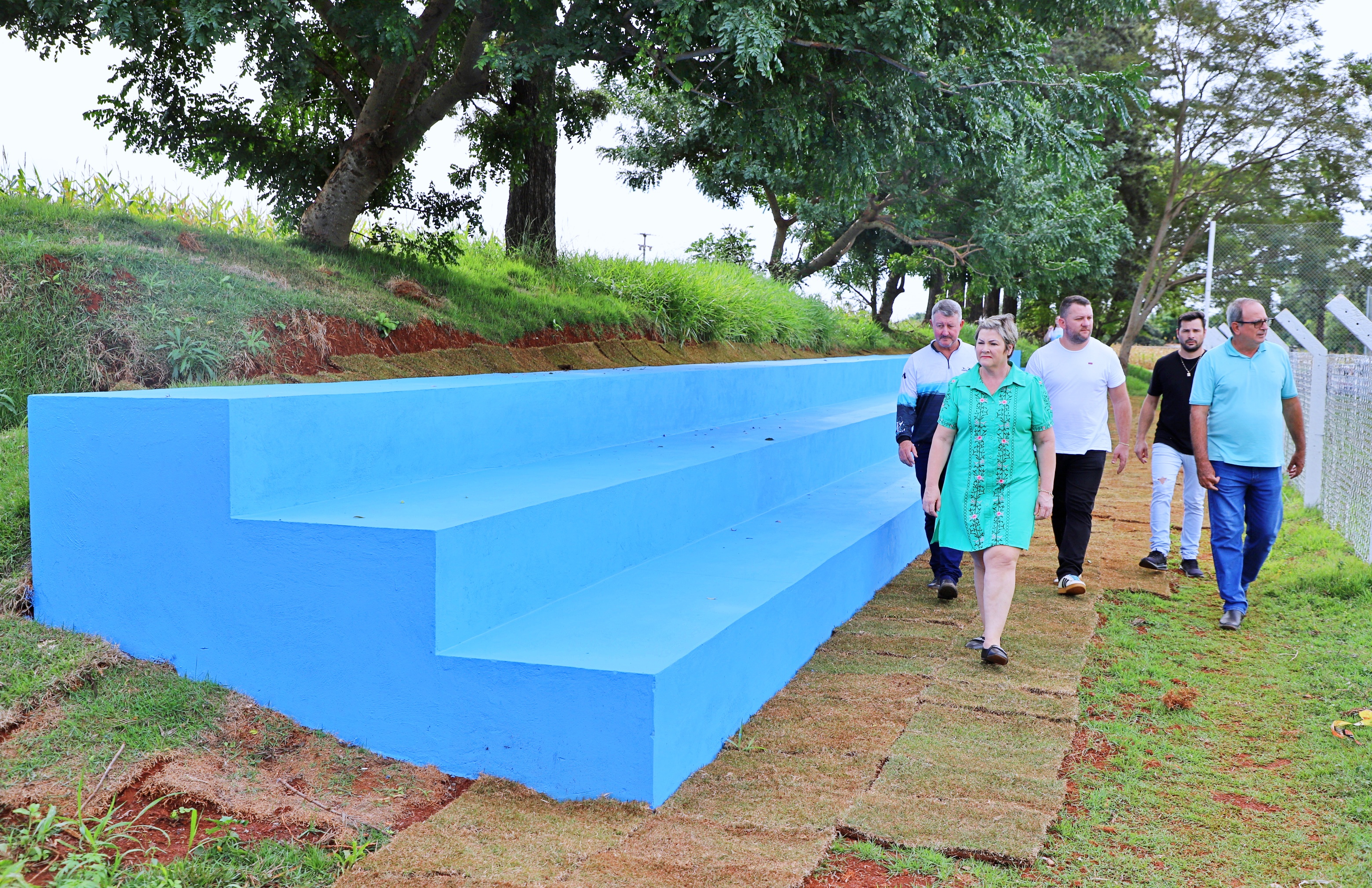 Na parte superior do campo, foi construída arquibancada na parte entre os vestiários até o início do campo de futebol medindo 2,4x34 metros de extensão com três degraus cuja execução já foi efetuada.