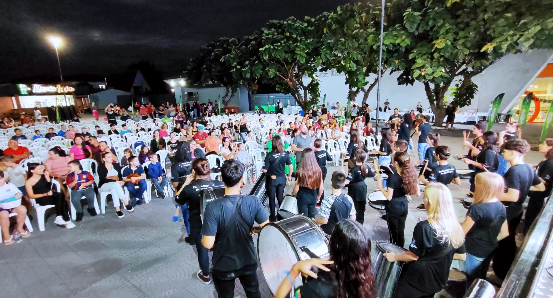 A programação começou às 18h30 com a animação "Brichos 2", seguida pela comédia "Minha Mãe é uma Peça 3" às 20h. E o melhor: tudo com tradução em Libras e audiodescrição para garantir que ninguém ficasse de fora da diversão. Antes das projeções das produções cinematográficas, a Fanfarra Municipal fez uma apresentação ao público.