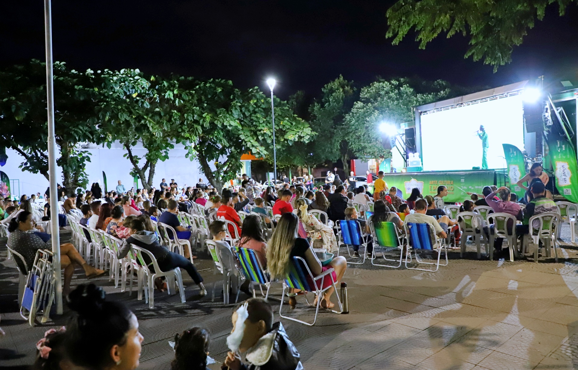 Com a carreta-palco, a Secretaria de Estado de Cultura e a Messe Produções Culturais transformaram o espaço em um verdadeiro cinema a céu aberto. Viabilizado pela Lei Paulo Gustavo, o projeto busca levar produções brasileiras para todos os cantos do Paraná.