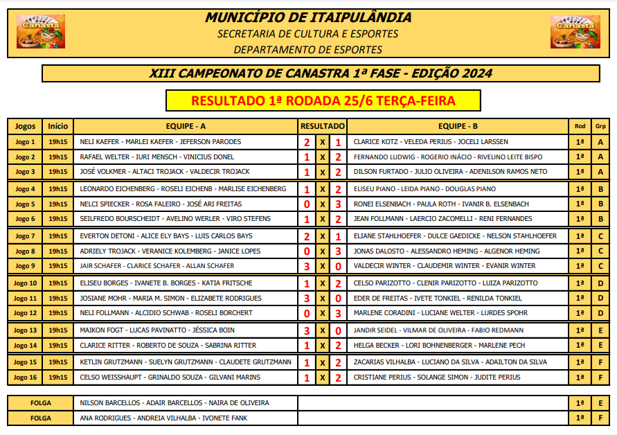 34 equipes dão inÃcio ao XIII Campeonato Municipal de Canastra em Itaipulândia