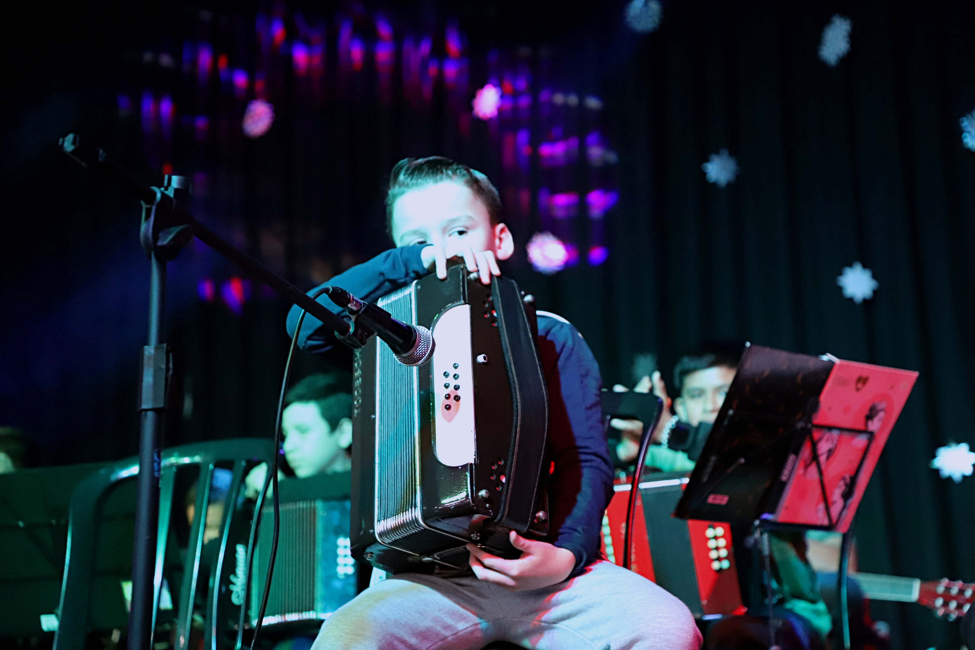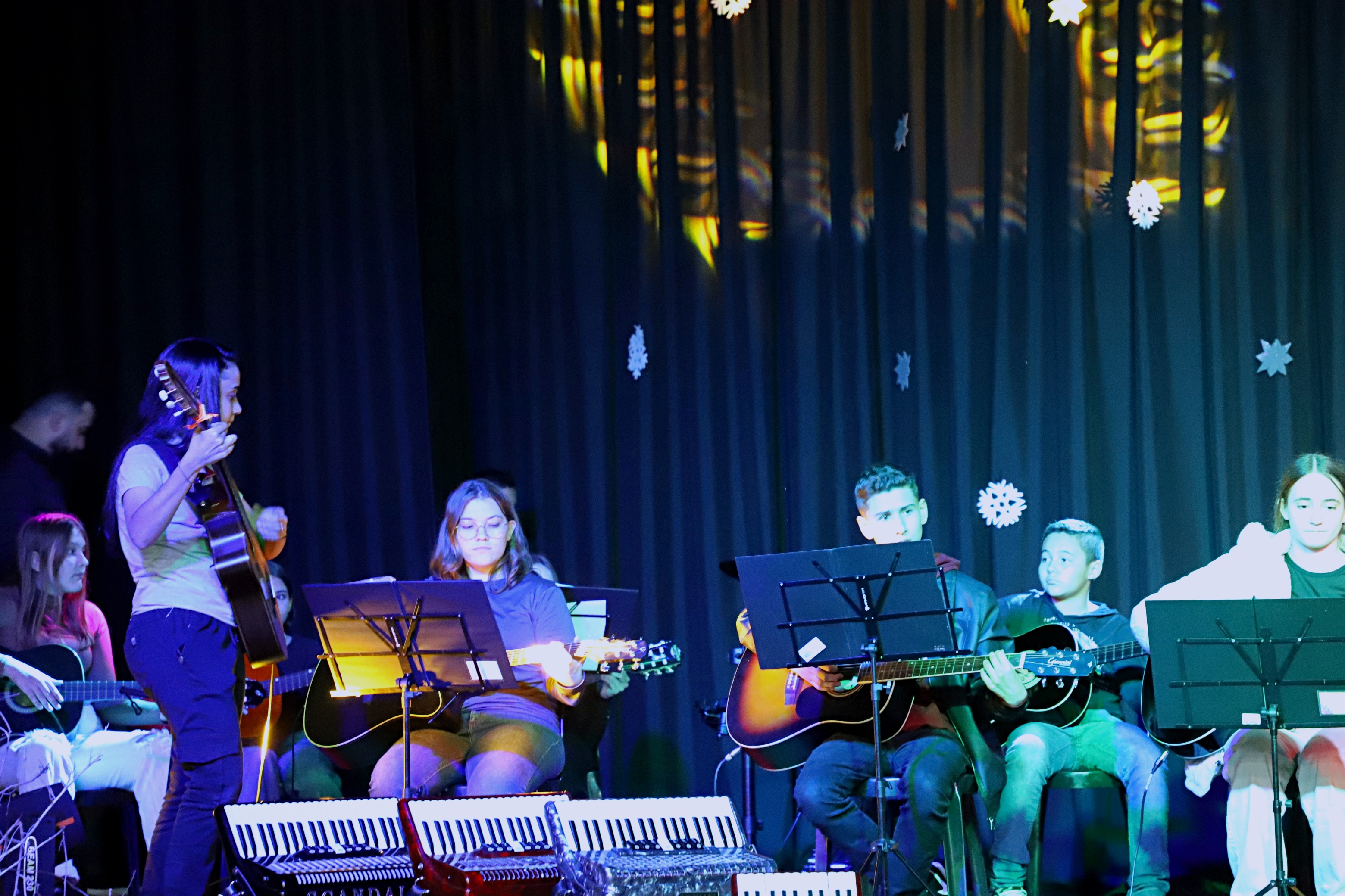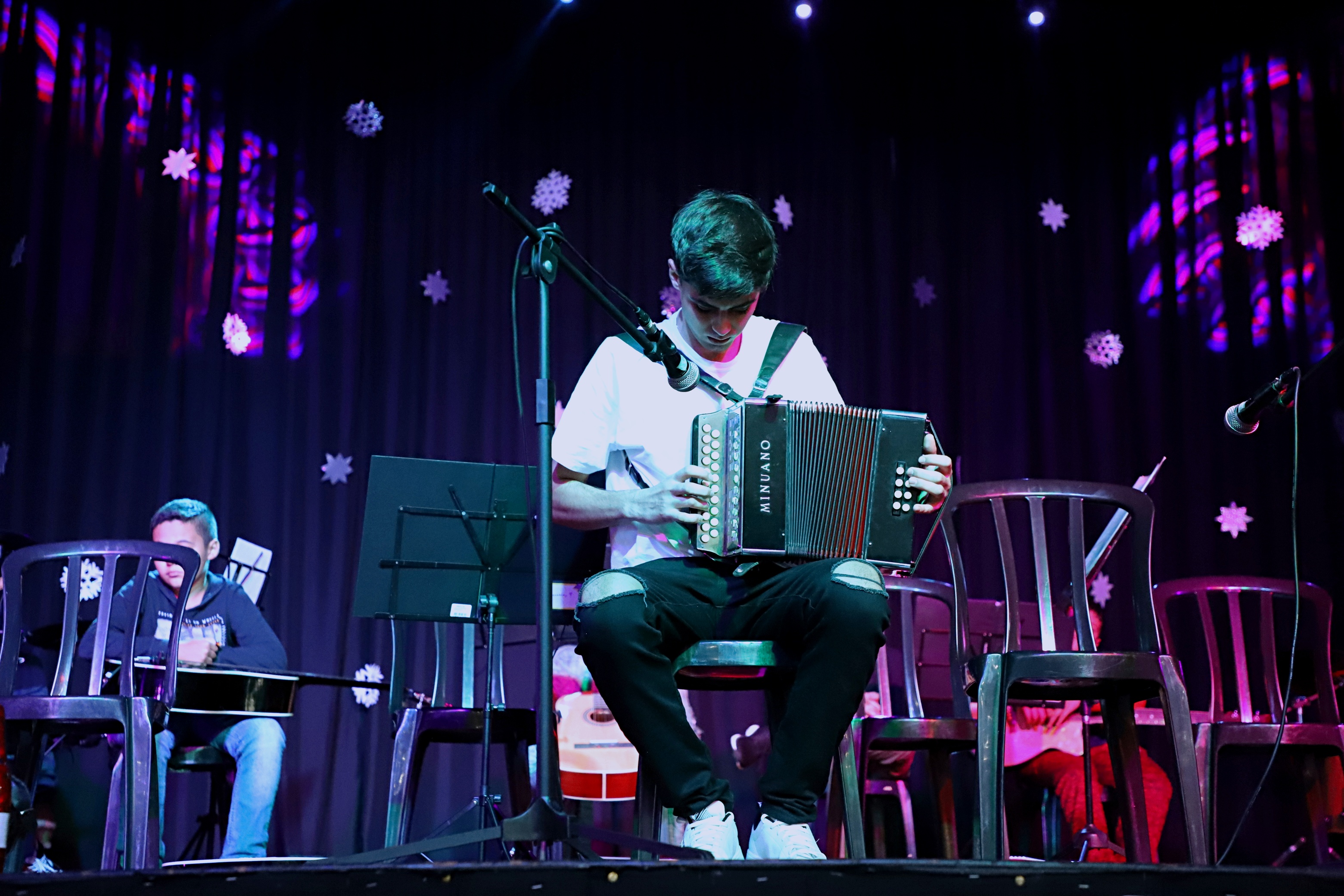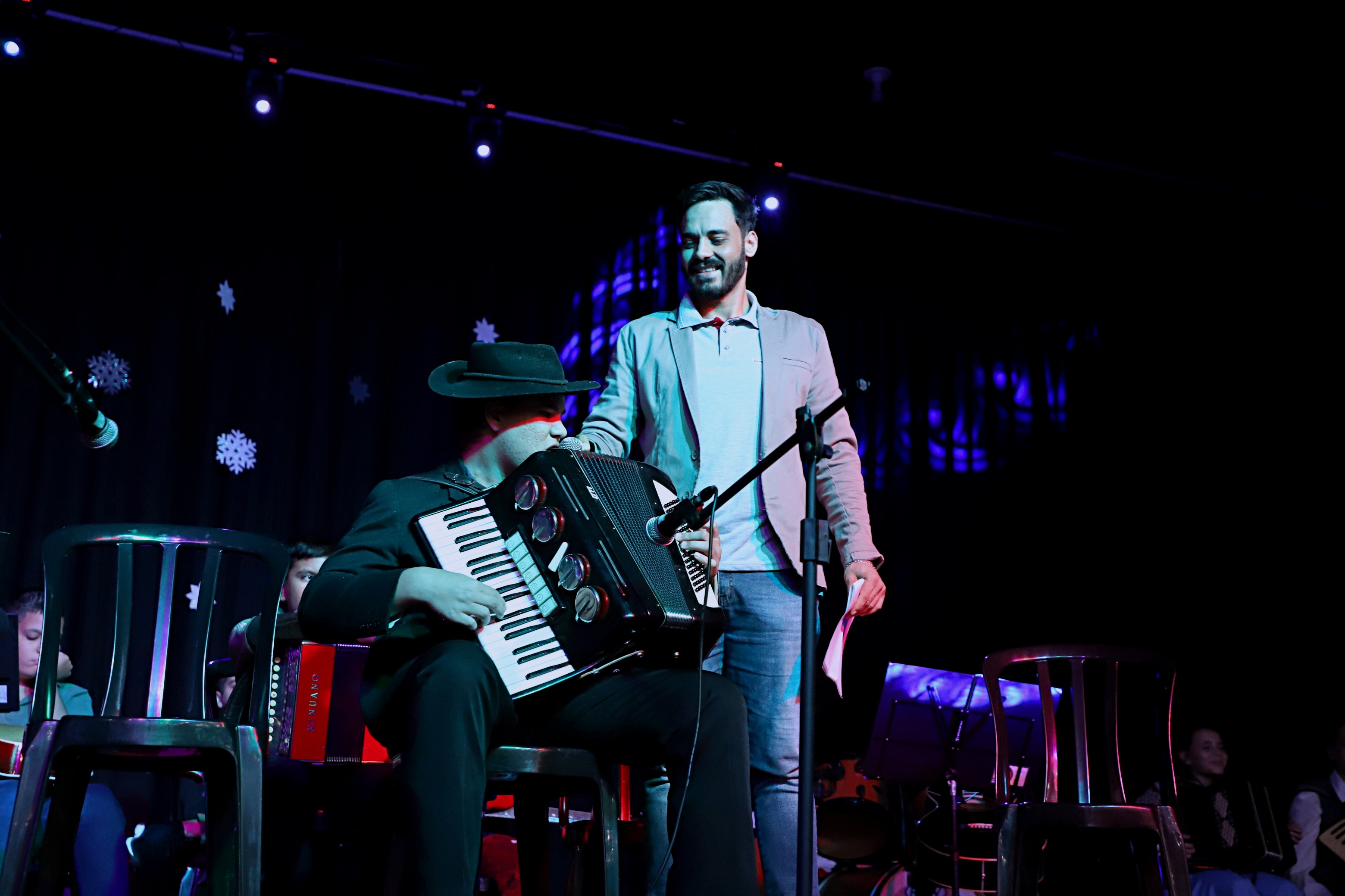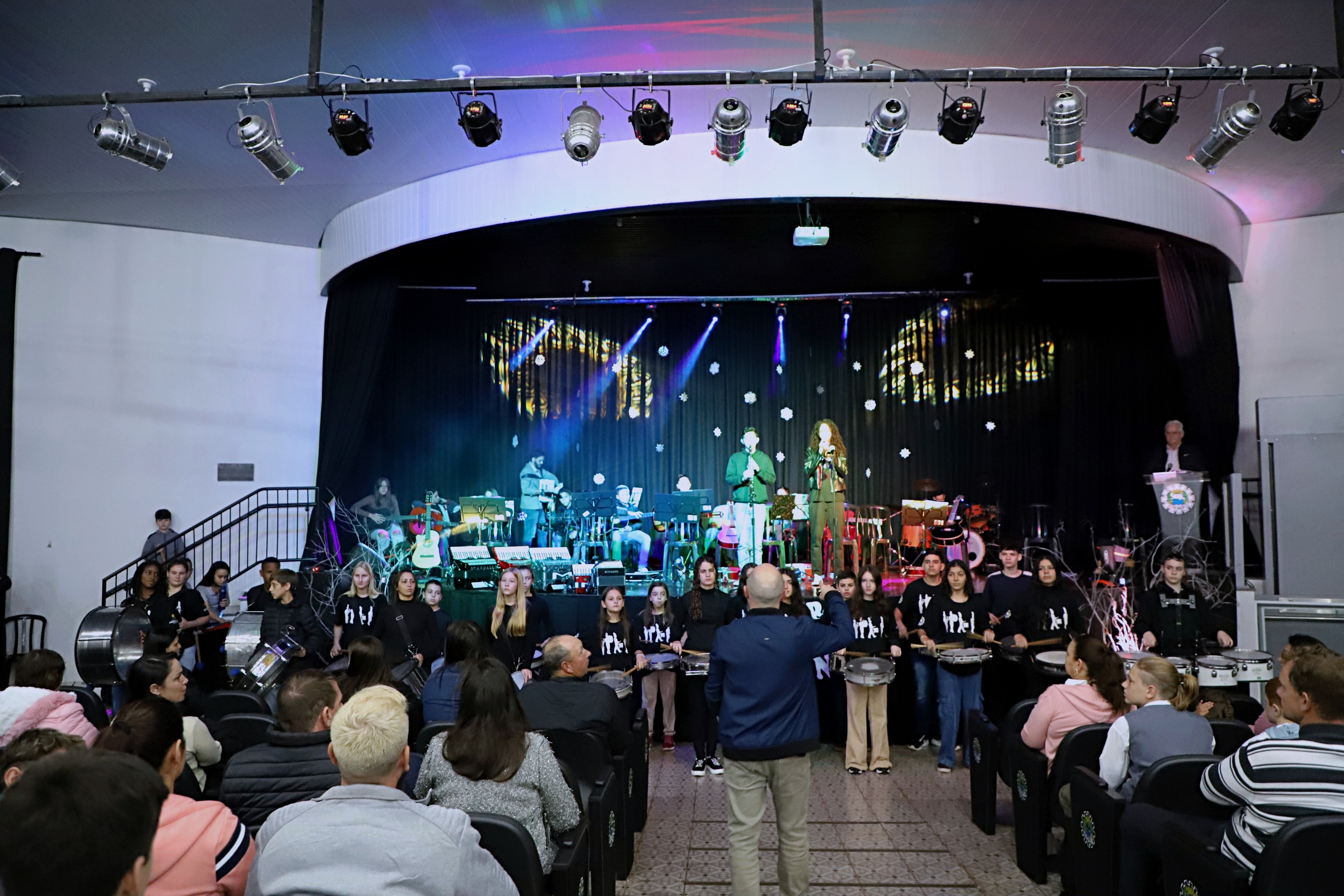 O professor Ezequiel Hermes conduziu a apresentação de gaita, enquanto a professora Eloisa Grotto coordenou as performances de violão e bateria. O pais e outros presentes se encantaram com as apresentações e dedicação dos alunos.