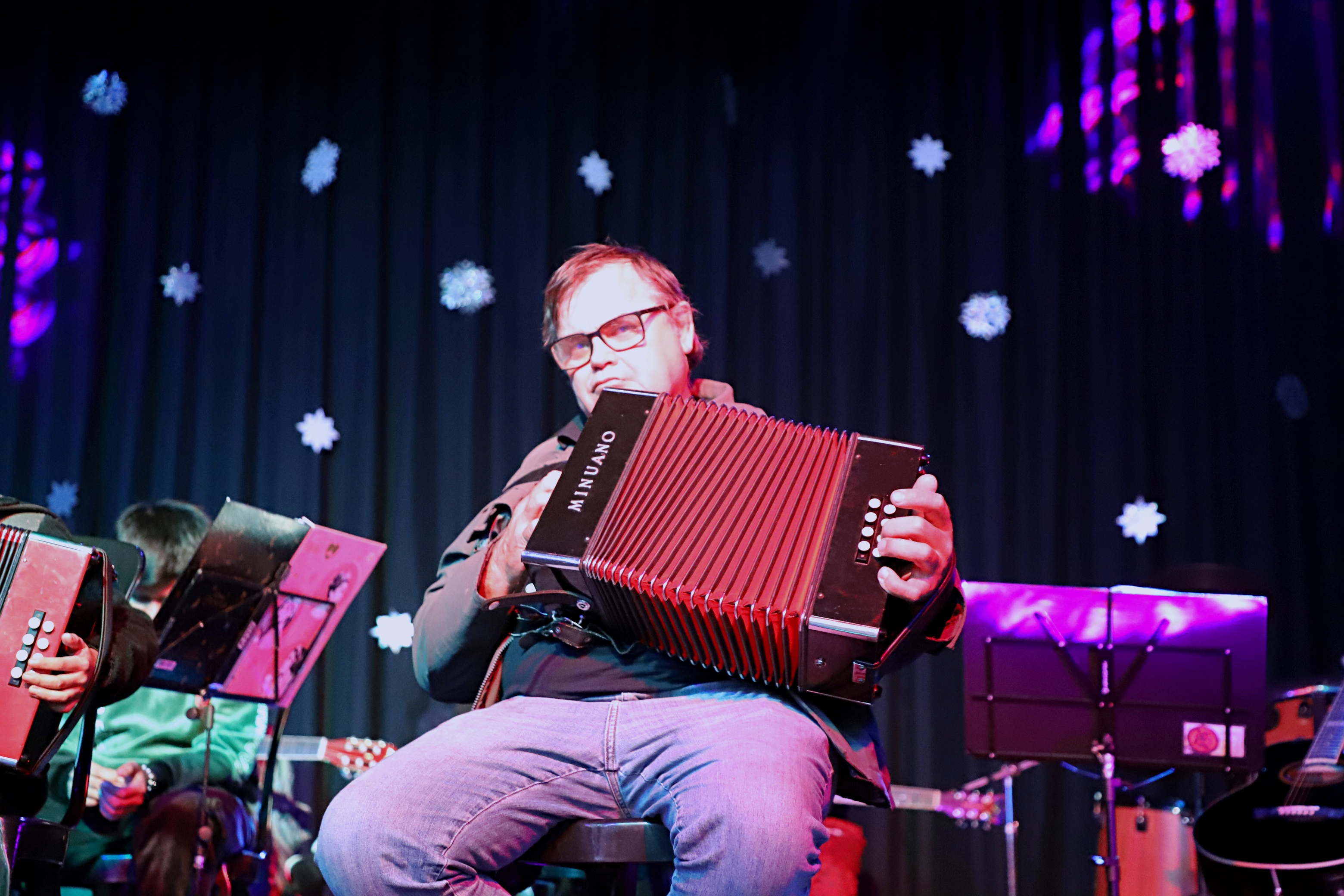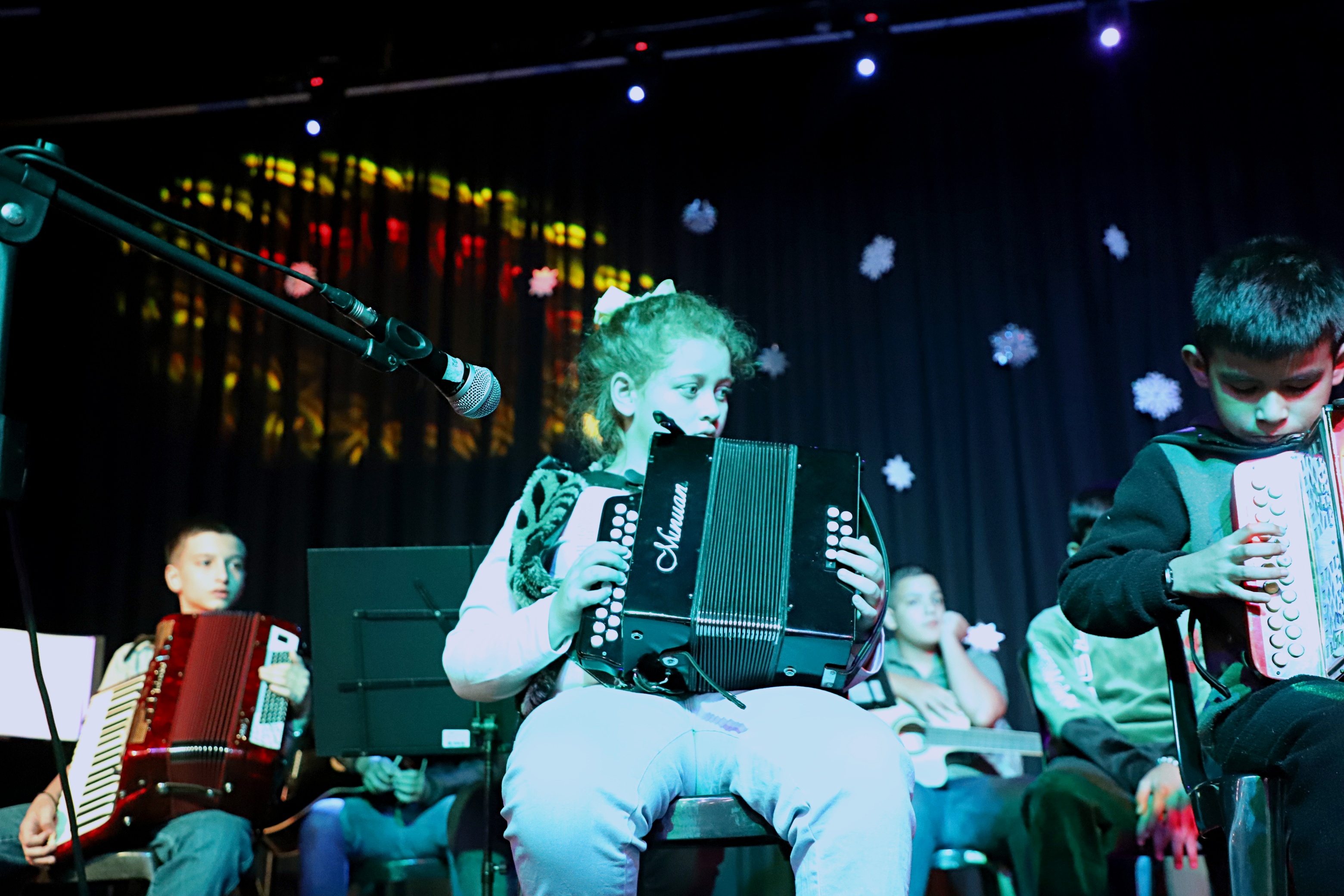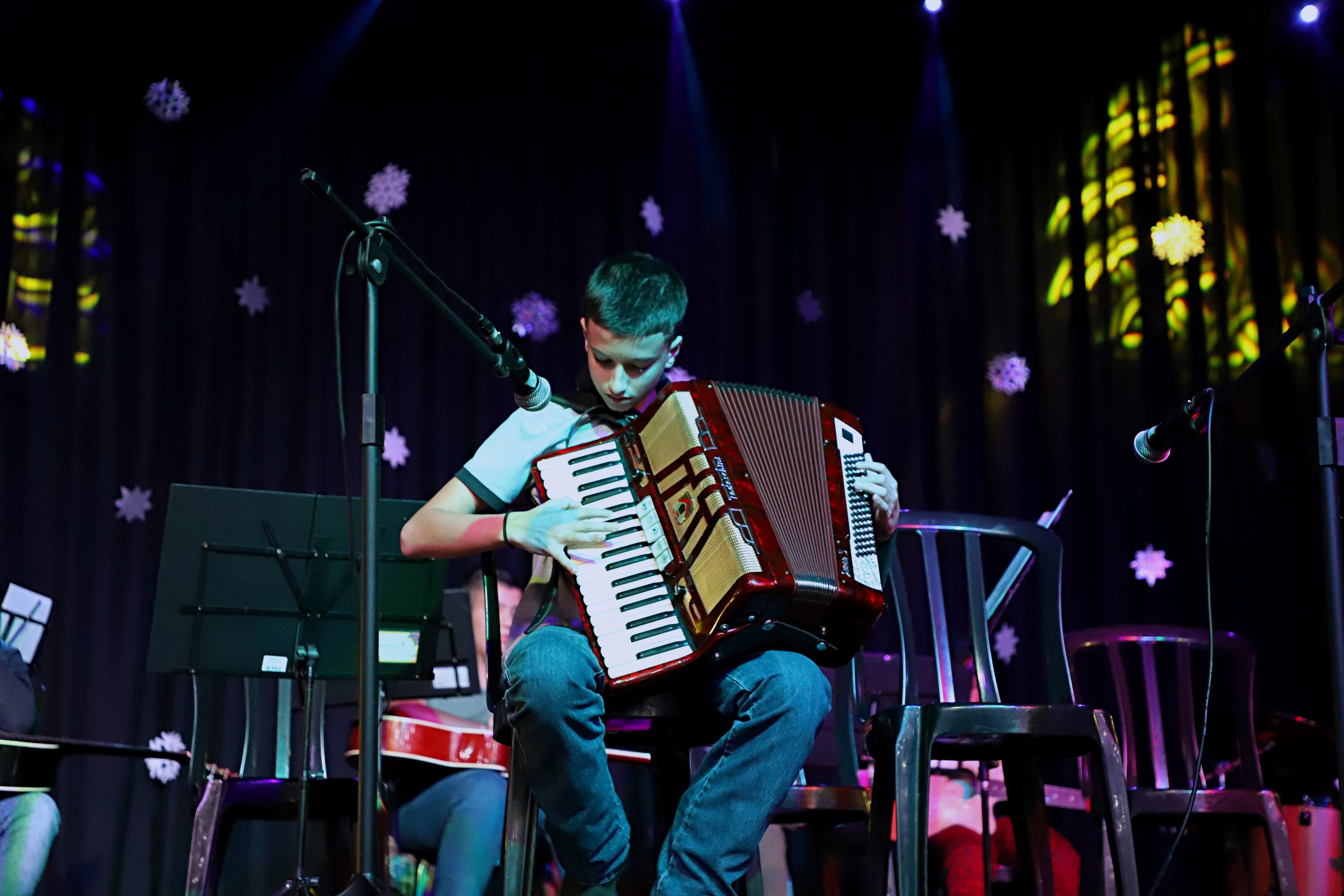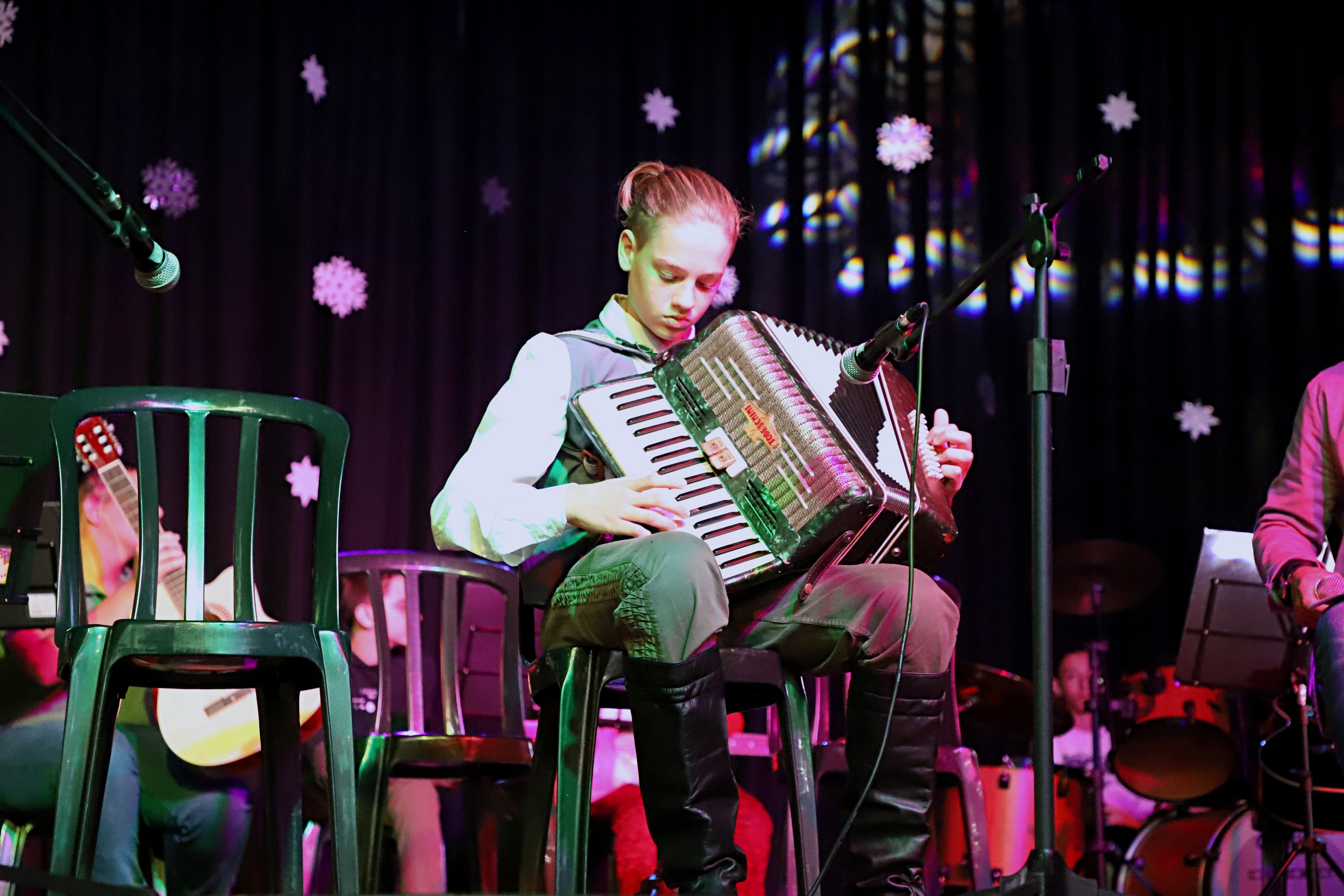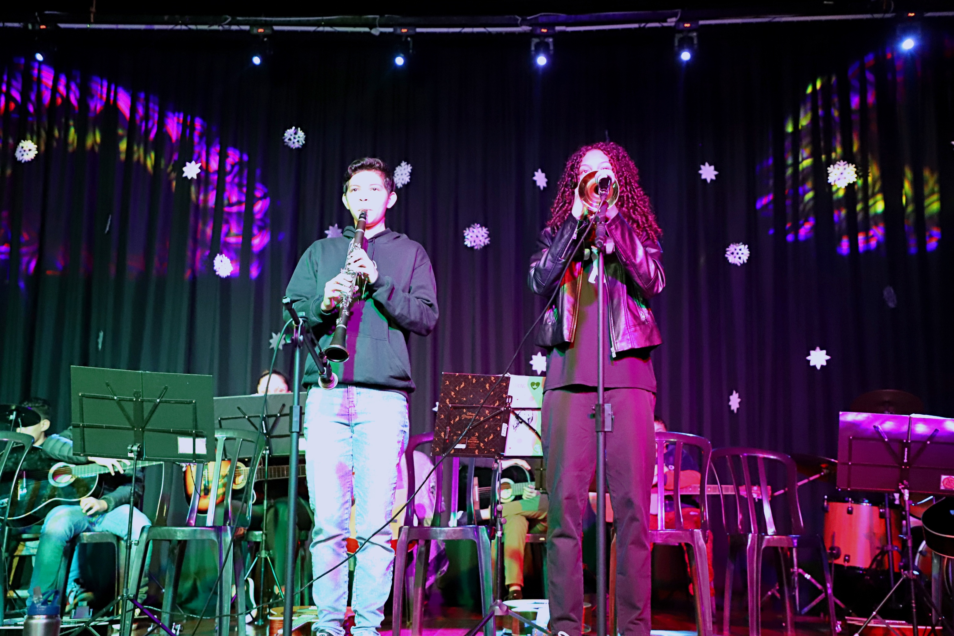 O professor Ezequiel Hermes conduziu a apresentação de gaita, enquanto a professora Eloisa Grotto coordenou as performances de violão e bateria. O pais e outros presentes se encantaram com as apresentações e dedicação dos alunos.