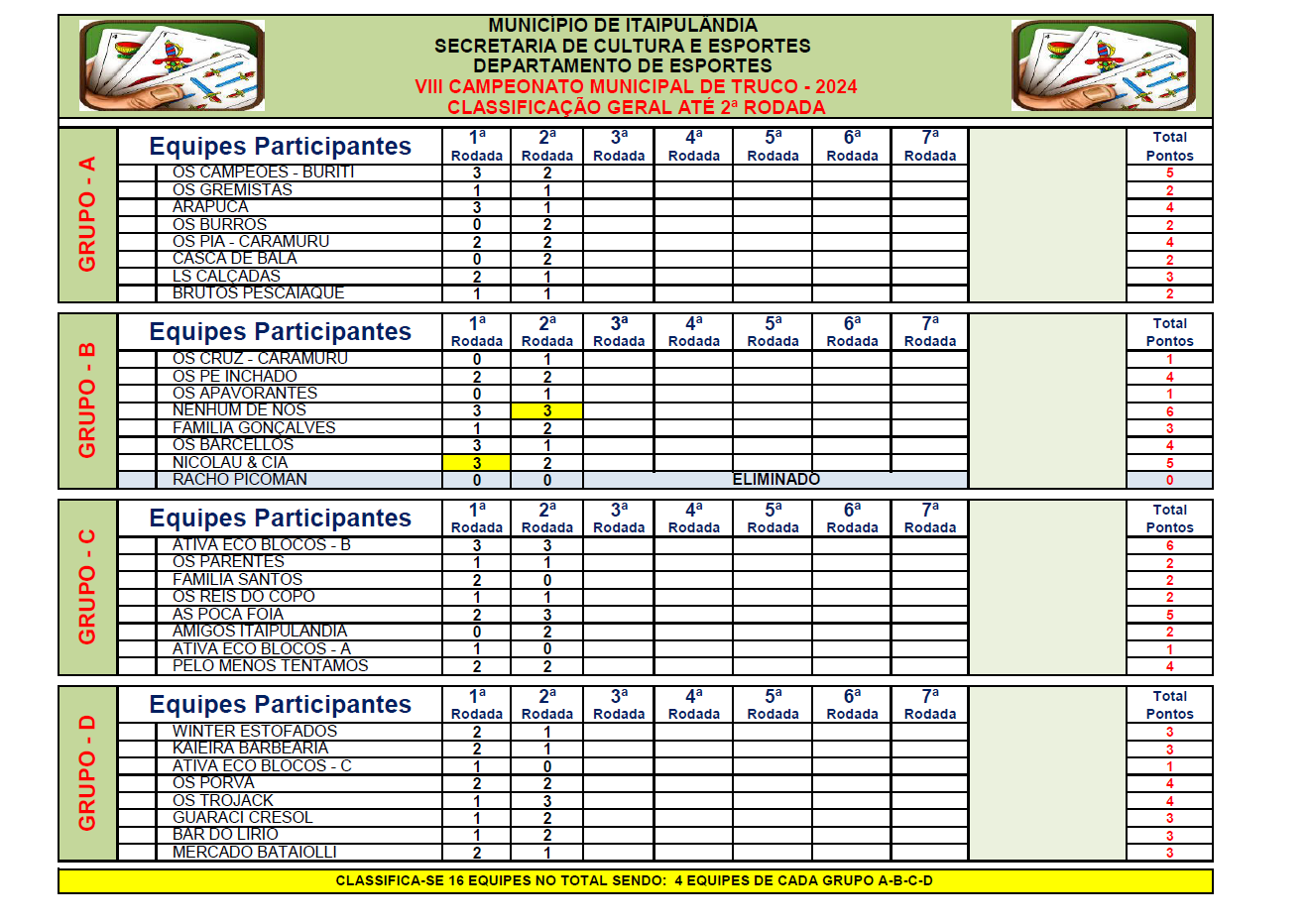 Confira os resultados da 1ª rodada e a classificação por Grupo: