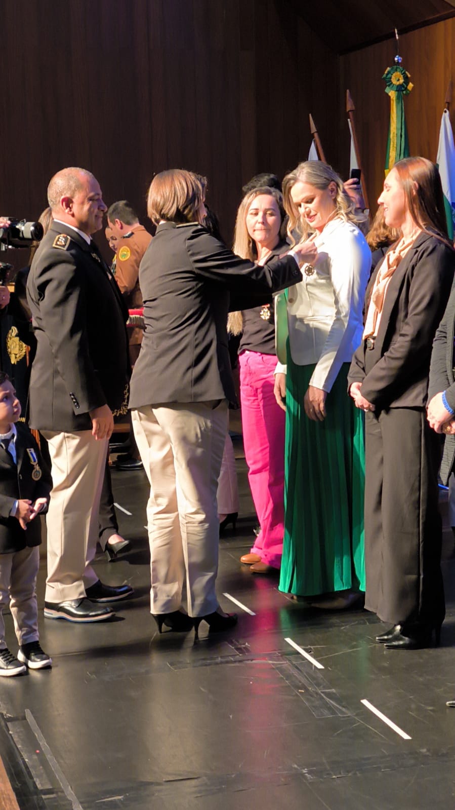 A Enfermeira Chefe do SAMU, Vanessa Betanin Pavinato, foi homenageada com a Medalha do Mérito de Serviços Humanitários, em reconhecimento ao seu comprometimento e dedicação aos serviços de emergência médica, proporcionando atendimento de qualidade e salvando vidas. Além dessas profissionais, a Secretária de Educação, Verônica Szerwieski Rui, as diretoras escolares Adinha Mohr, Josiane Vanessa Mohr e Marli Besing Gross, e a coordenadora da EEAP, Arli Frey, também foram agraciadas com a Medalha do Mérito Estudantil. Devido a compromissos previamente assumidos, estas elas não puderam comparecer ao evento, mas a homenagem reflete a importância e o valor de seu trabalho na educação do nosso município.