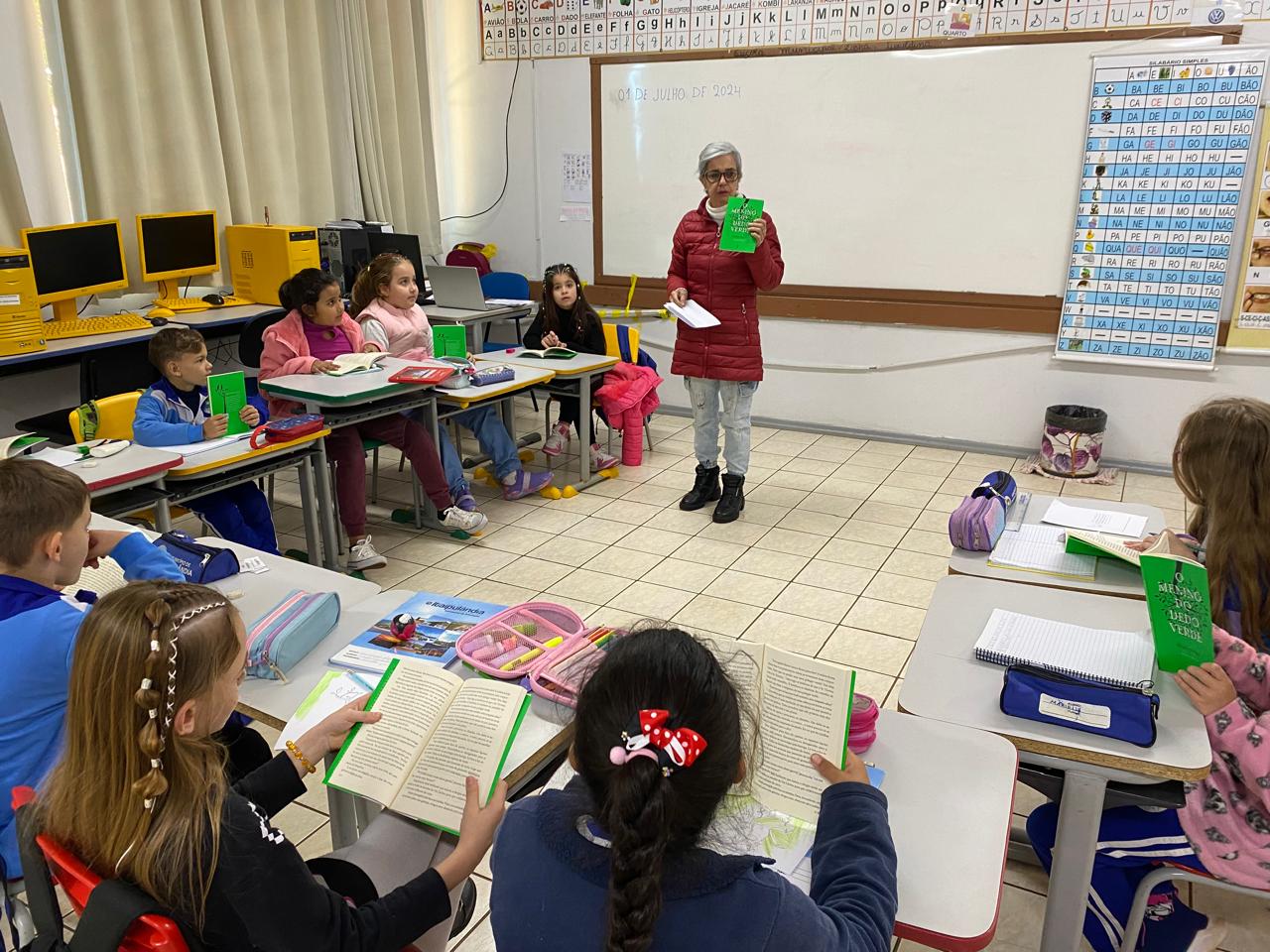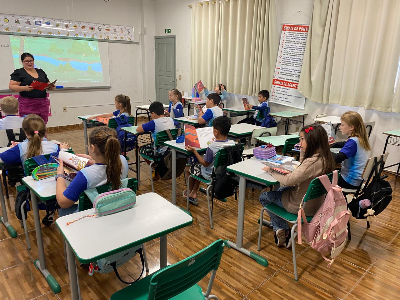 Neste ano, o município, contou com o apoio da Itaipu Binacional, que disponibilizou o material do Território da Leitura da Editora Moderna para todas as escolas municipais. Essa parceria resultou na distribuição de kits de livros, compostos por obras de autores diversos, a cada aluno do 1º ao 4º ano, garantindo que a experiência da leitura fosse acessível a todos.