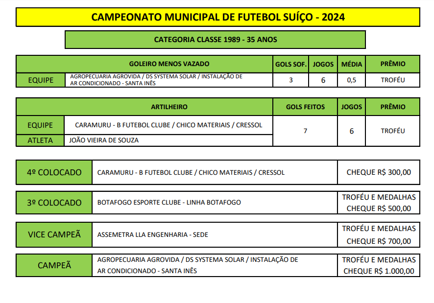 Agrop. Agrovida/DS System Solar Santa Inês sagra-se Campeã do Futebol SuÃço 35 anos de Itaipulândia