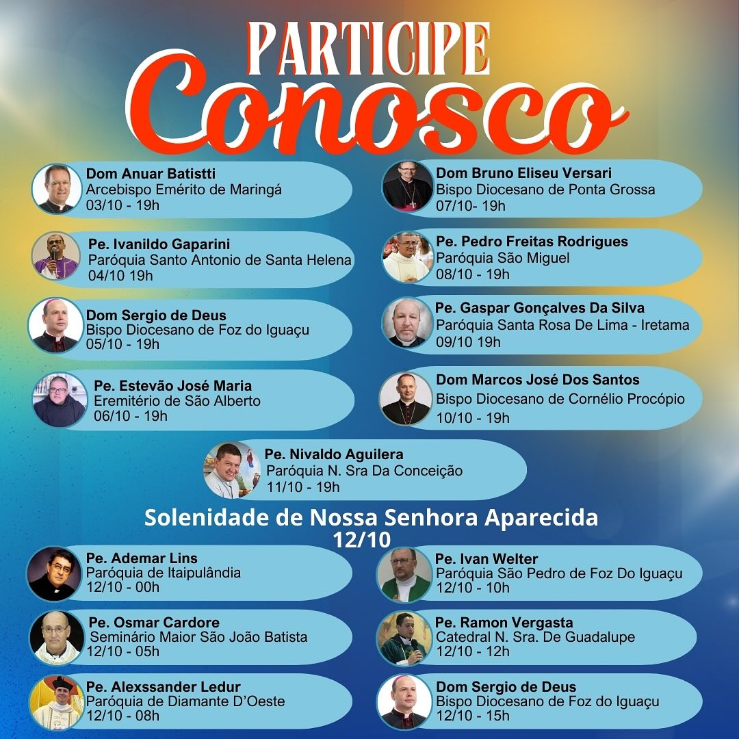 Em Itaipulândia, a programação conta com o apoio e suporte total da Administração Municipal que organiza e mantém a estrutura básica necessária, como tendas para abrigar os romeiros nas celebrações e disponibilizando equipes de apoio e socorro. Participe você também. A Mãe aparecida espera por você.