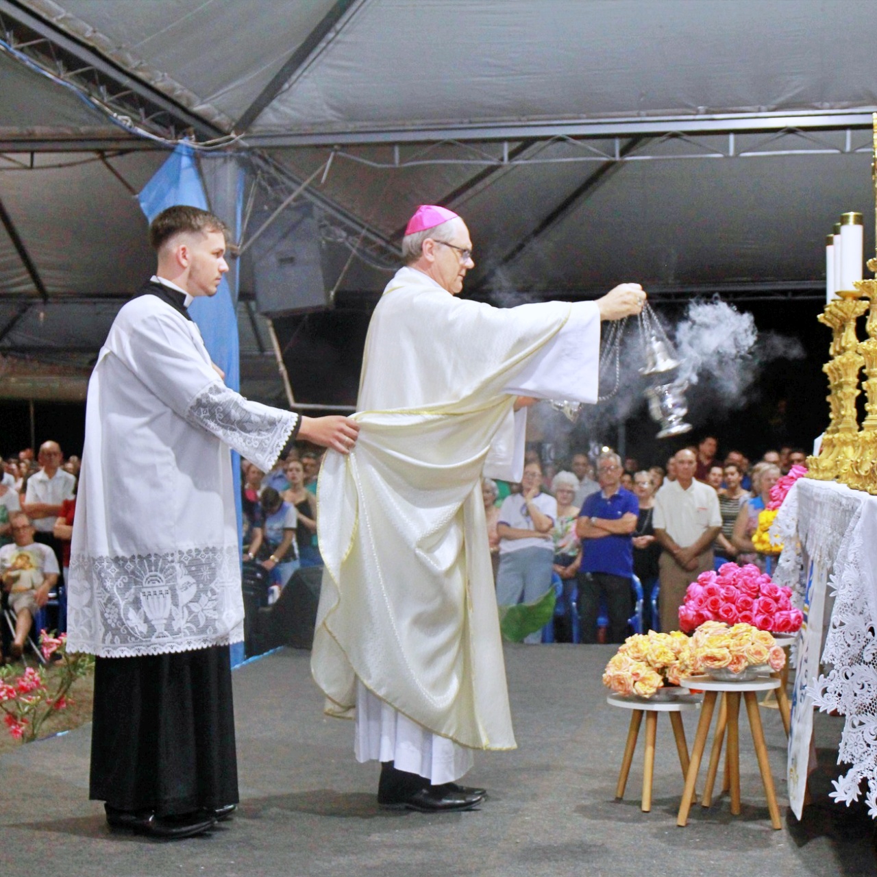 As celebrações iniciam todas as noites às 19h com o terço luminoso e em seguida a missa, sempre presidida por Padres e Bispos de toda a região.