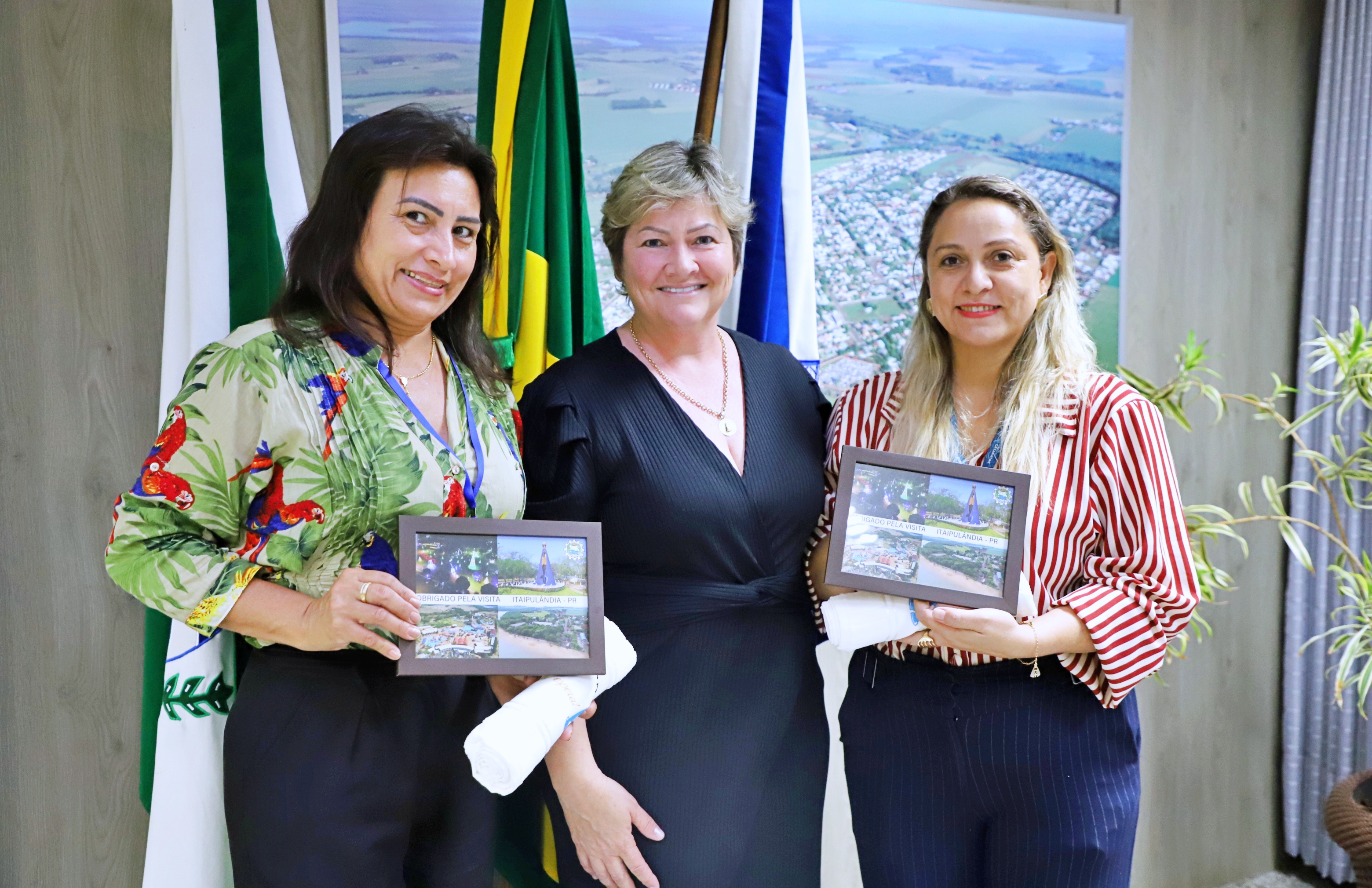 Conforme disse a Secretária Deviani Pereira de Paz “foi um prazer sermos recebidas pela prefeita Cleide Prates e termos a oportunidade de conhecer uma pessoa maravilhosa e exemplo de gestora pública. Parabenizamos a população de Itaipulândia por terem à frente do Executivo uma mulher preocupada com sua cidade, mantendo a mesma limpa e organizada e nesse período recebendo com muito carinho romeiros de toda a região.” Por sua vez a prefeita Cleide Prates agradeceu a visita, deixando as portas abertas para a troca de ideias e informações.