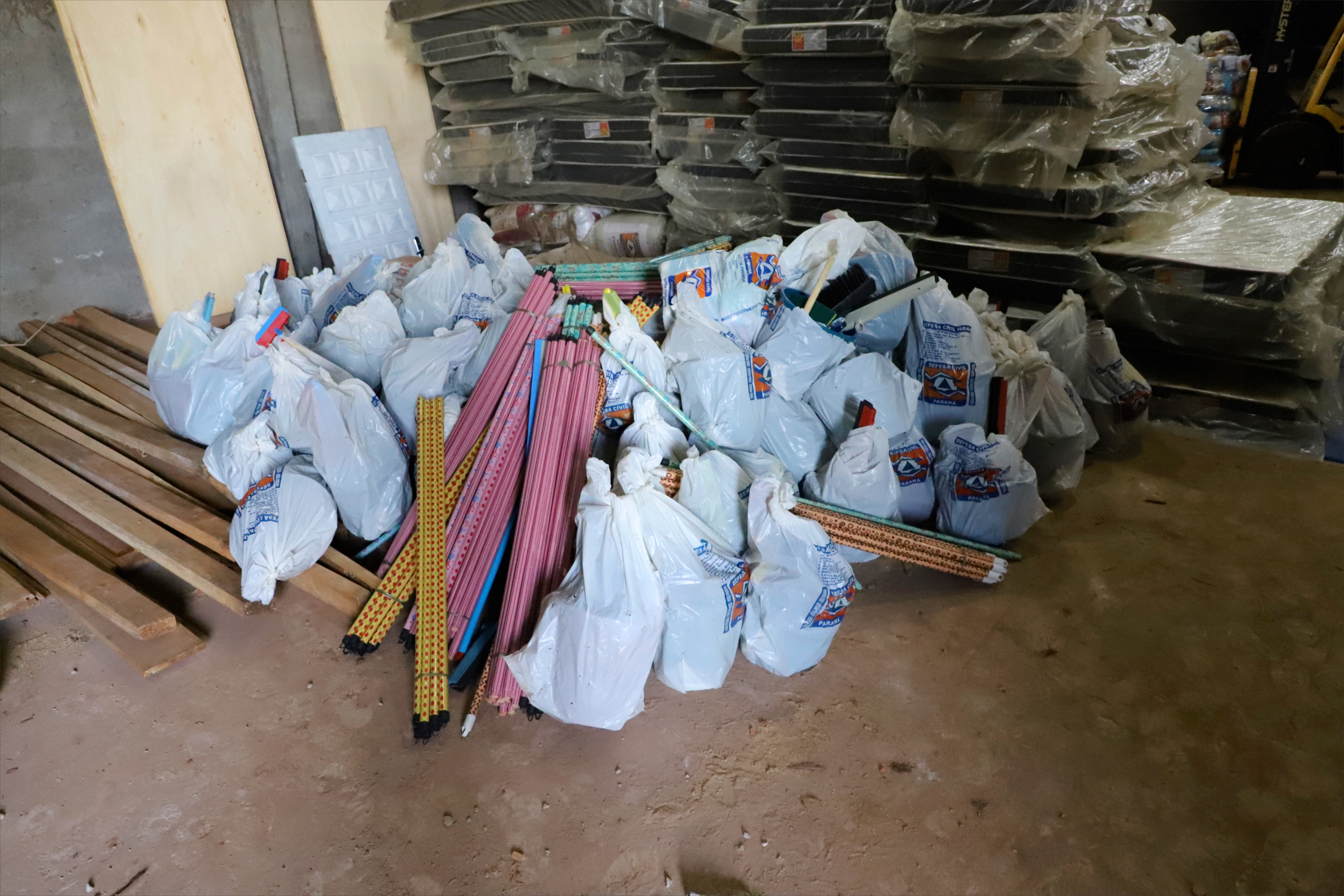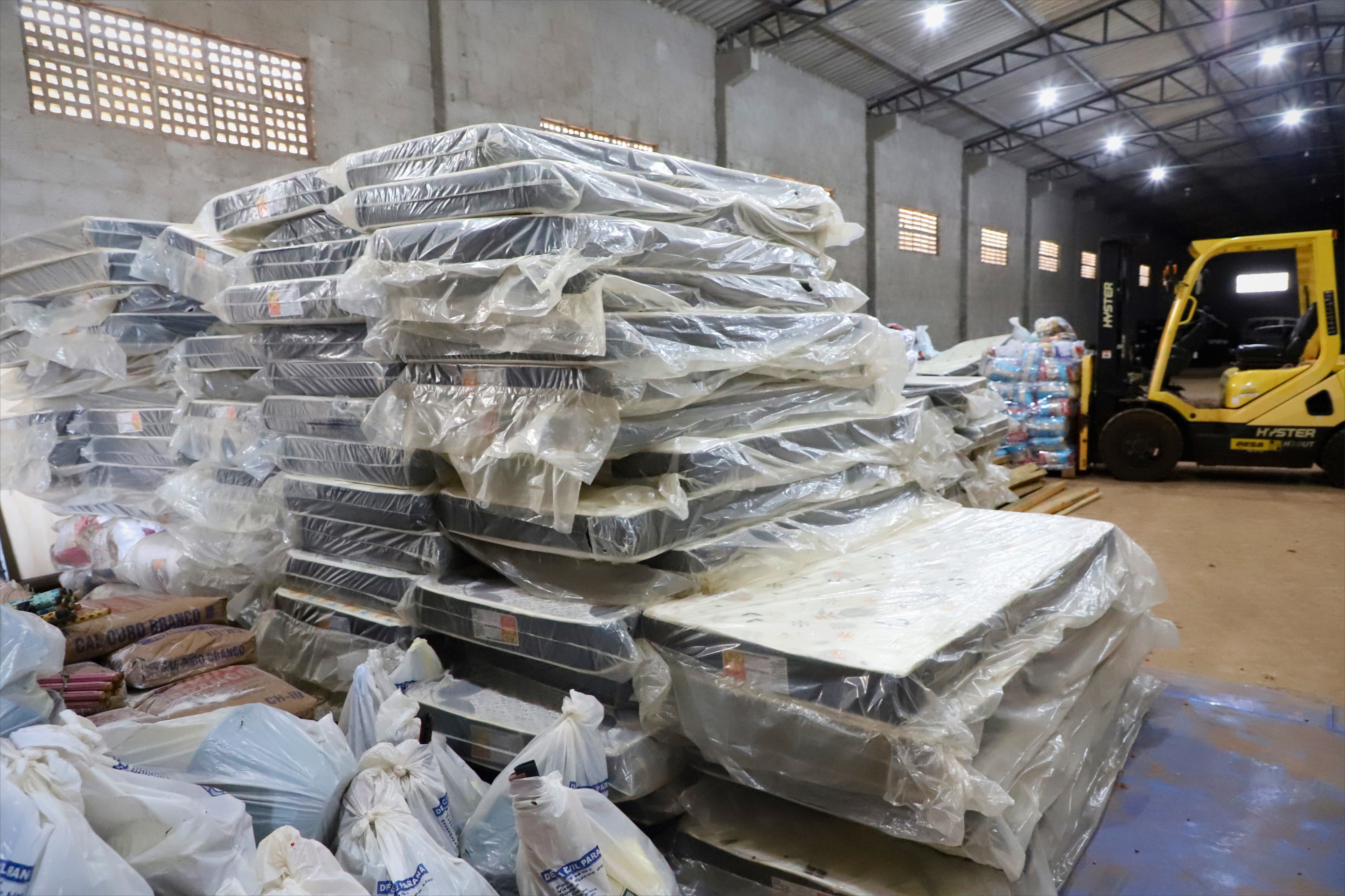 Foram recebidos um total 120 kits dormitório, compostos por travesseiros, lençóis, fronhas e cobertas de solteiro, além de 100 kits de limpeza, 400 kits de higiene, 100 cestas básicas e 80 colchões de solteiro.