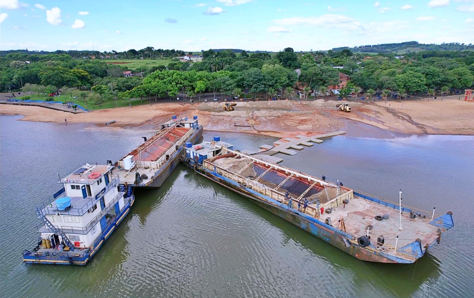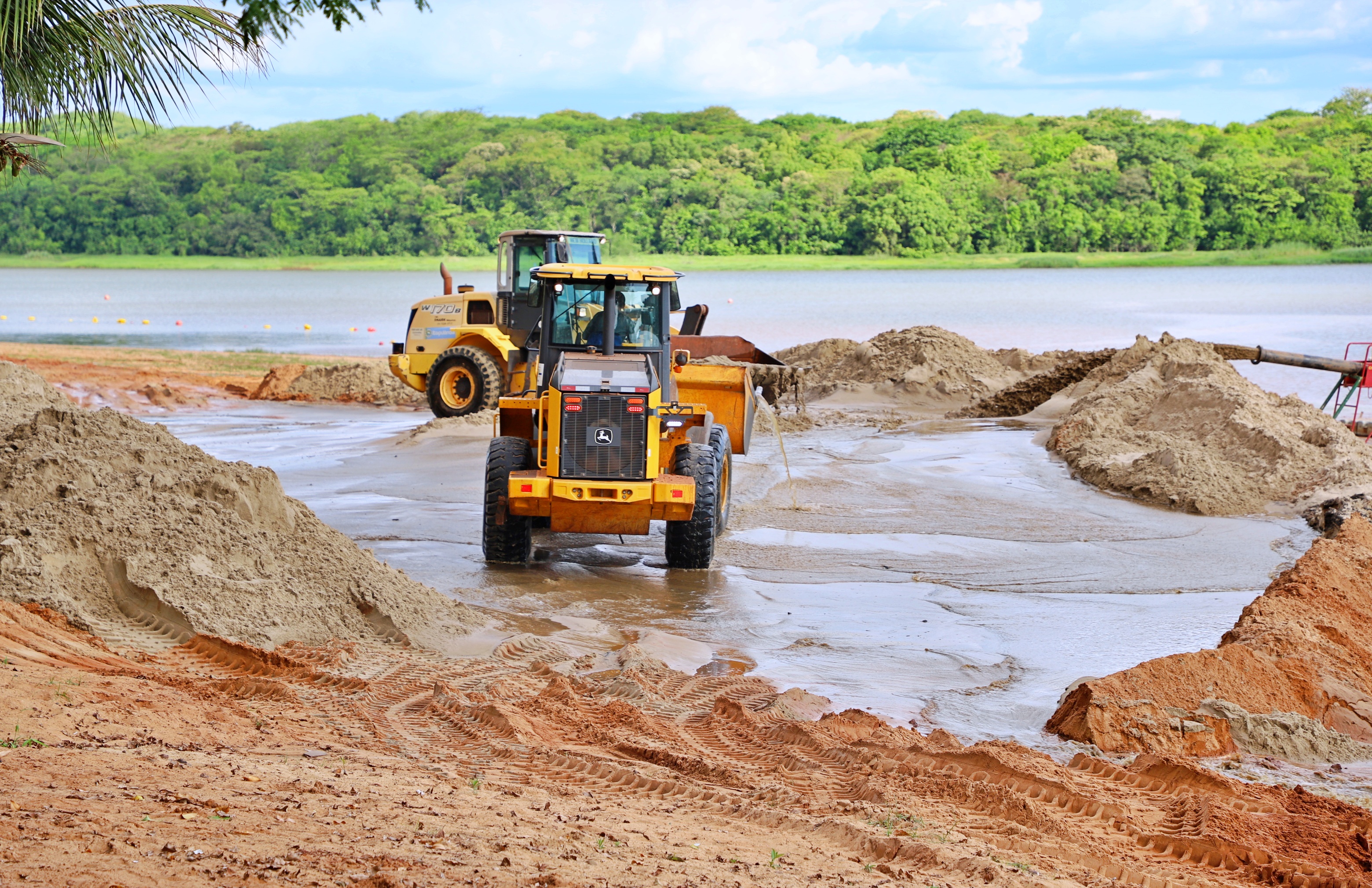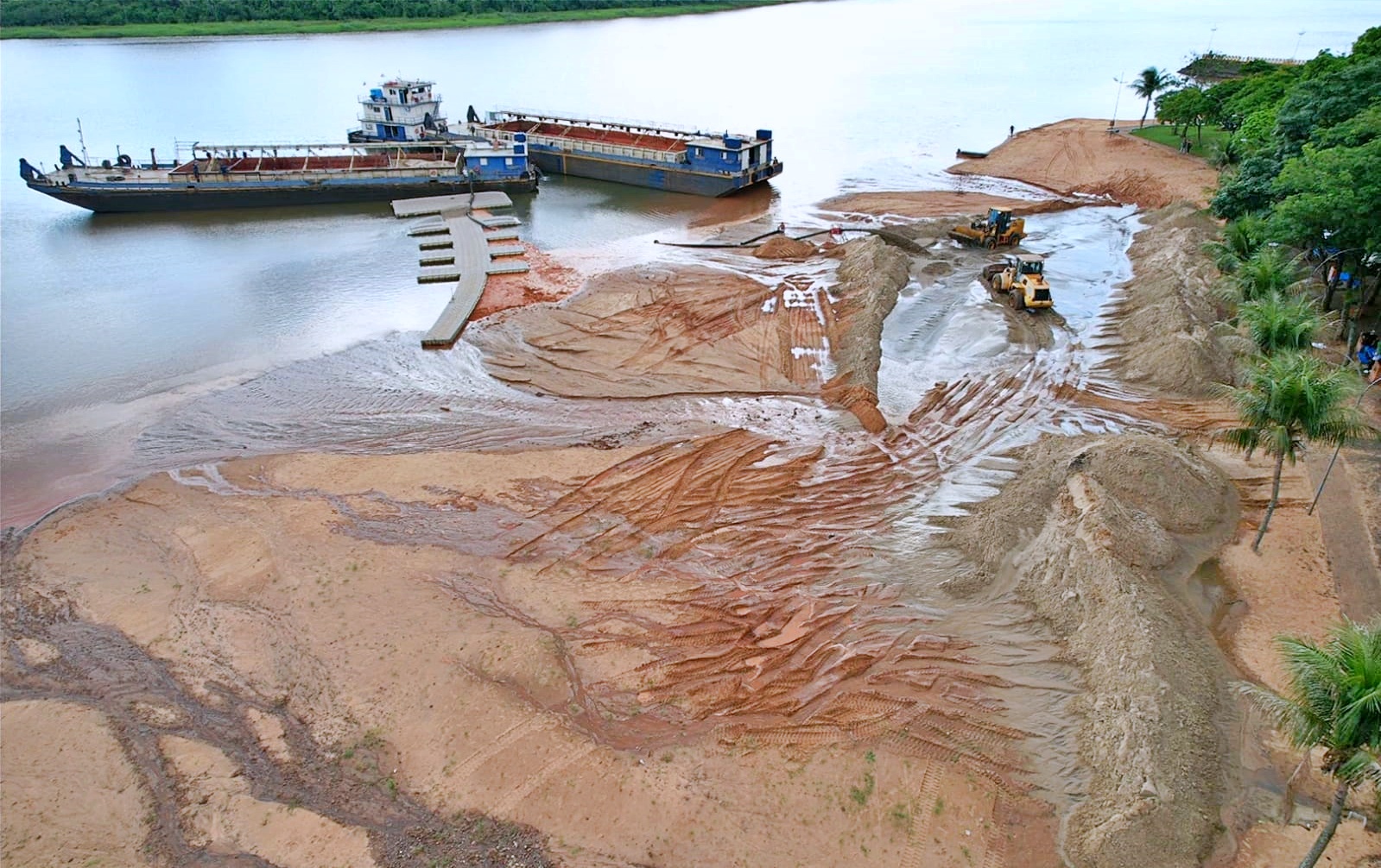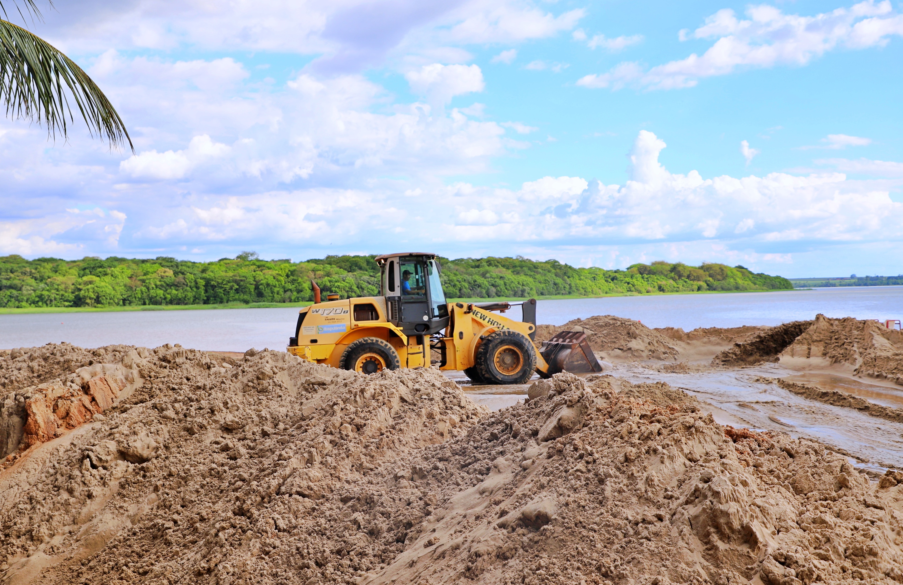 O material foi transportado de balsa, visando repor a areia que foi perdida em decorrência das chuvas e renovar o visual da área turística. A iniciativa tem como objetivo revitalizar o espaço, mantendo o atrativo mais bonito tanto para moradores quanto para visitantes, reforçando o compromisso com a preservação e o desenvolvimento do turismo local.