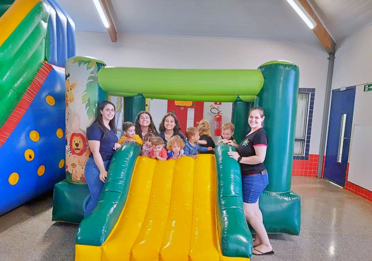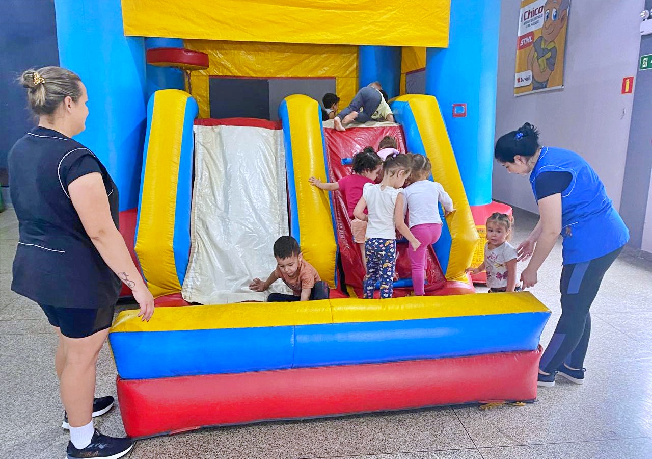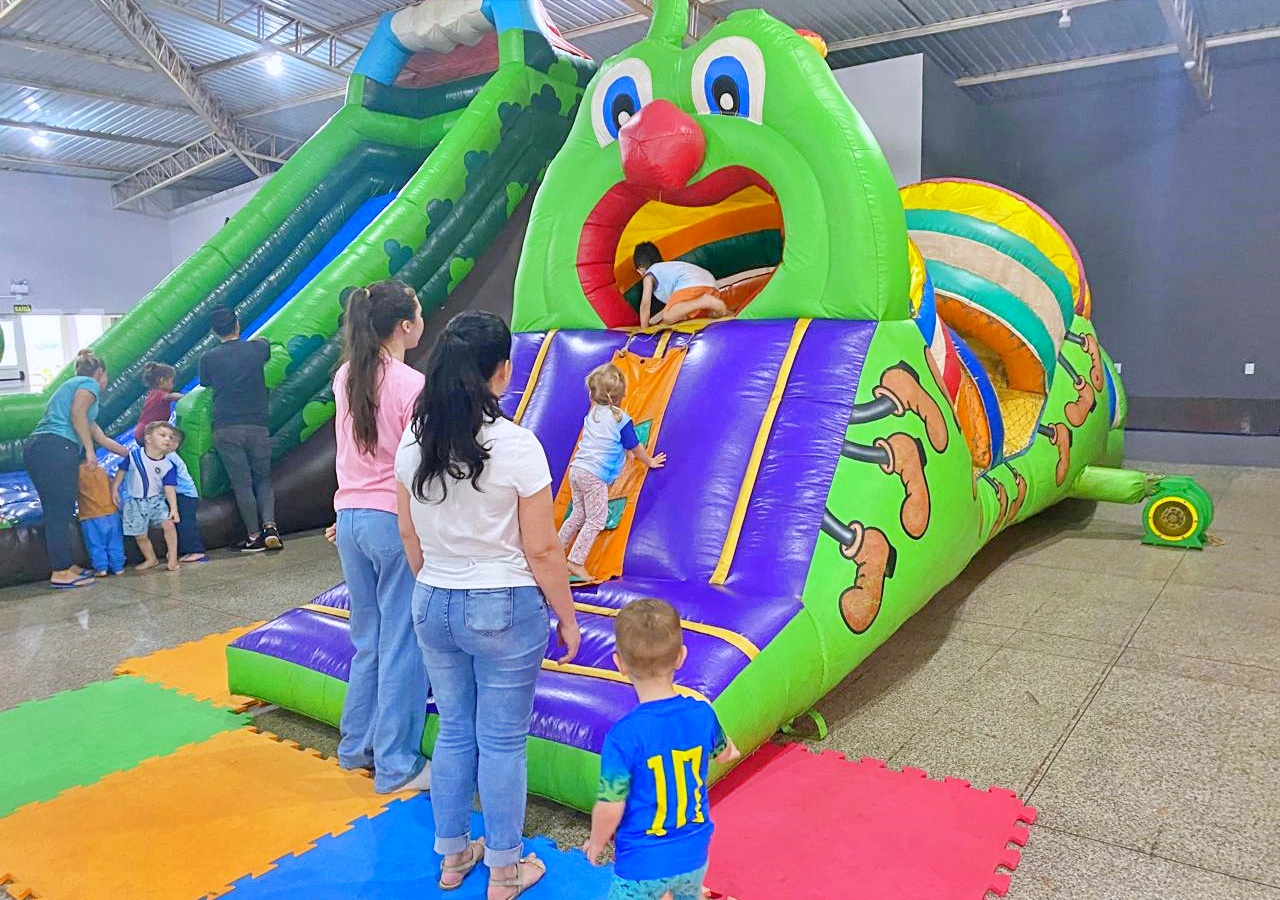 Uma grande estrutura de brinquedos foi instalada para garantir momentos de diversão e lazer às crianças. A iniciativa proporcionou um ambiente descontraído e alegre, com a presença de monitores para auxiliar nos equipamentos, além do acompanhamento dos profissionais da educação.