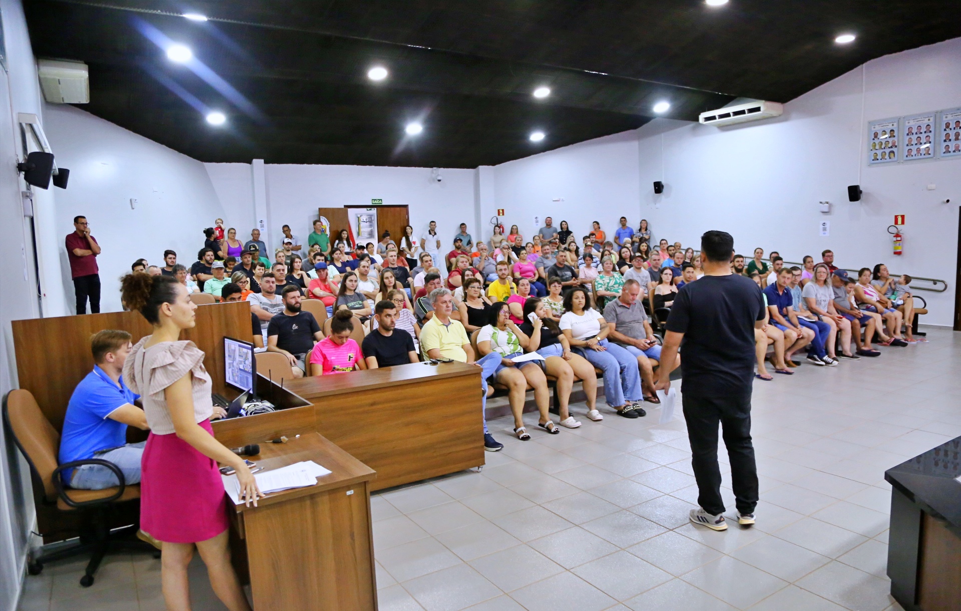 As famílias foram reunidas no auditório da Câmara de Vereadores, onde receberam, da equipe da Secretaria de Habitação, as orientações necessárias para darem início às obras.