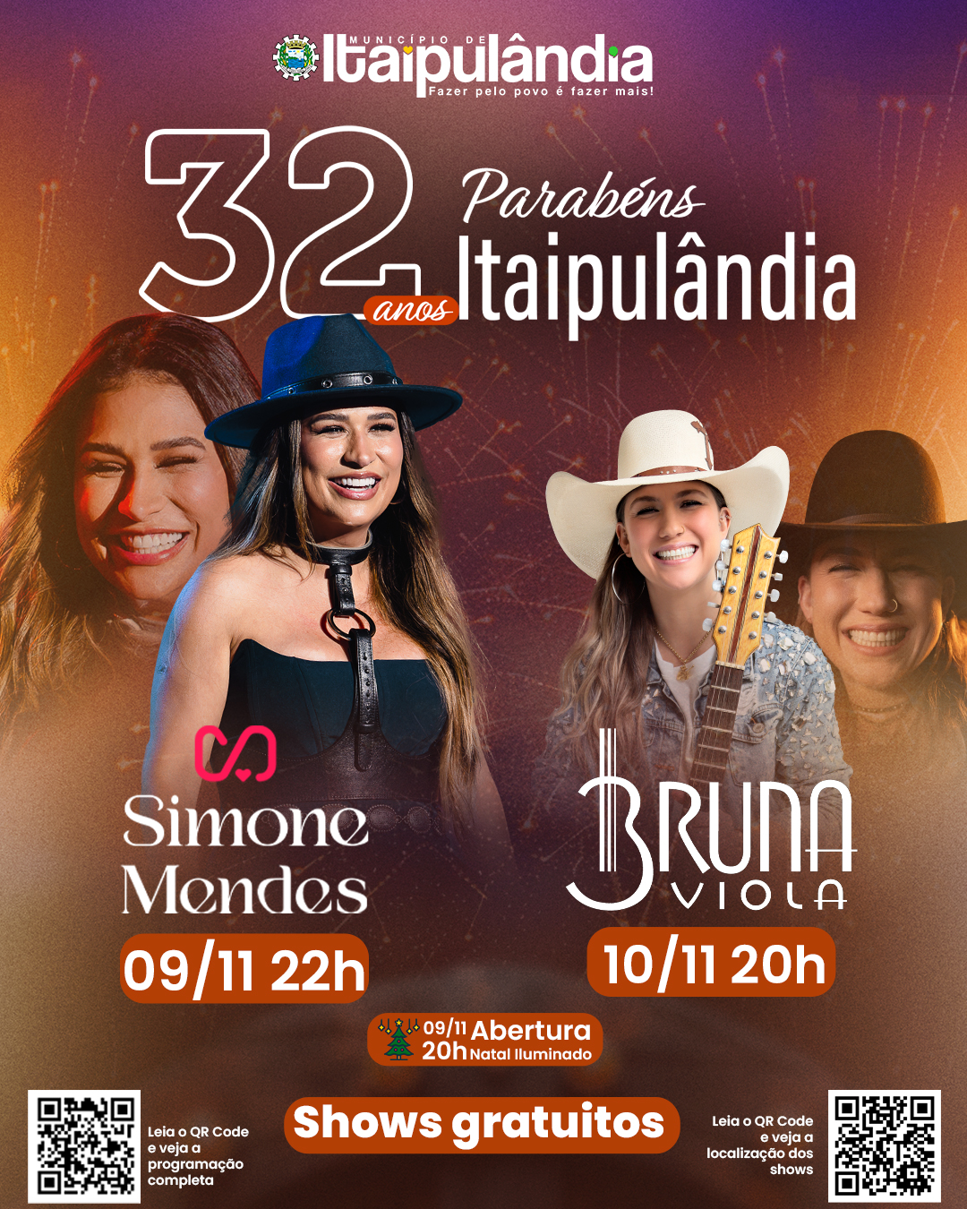 Comemorando 32 anos, Itaipulândia terá shows com Simone Mendes e Bruna Viola