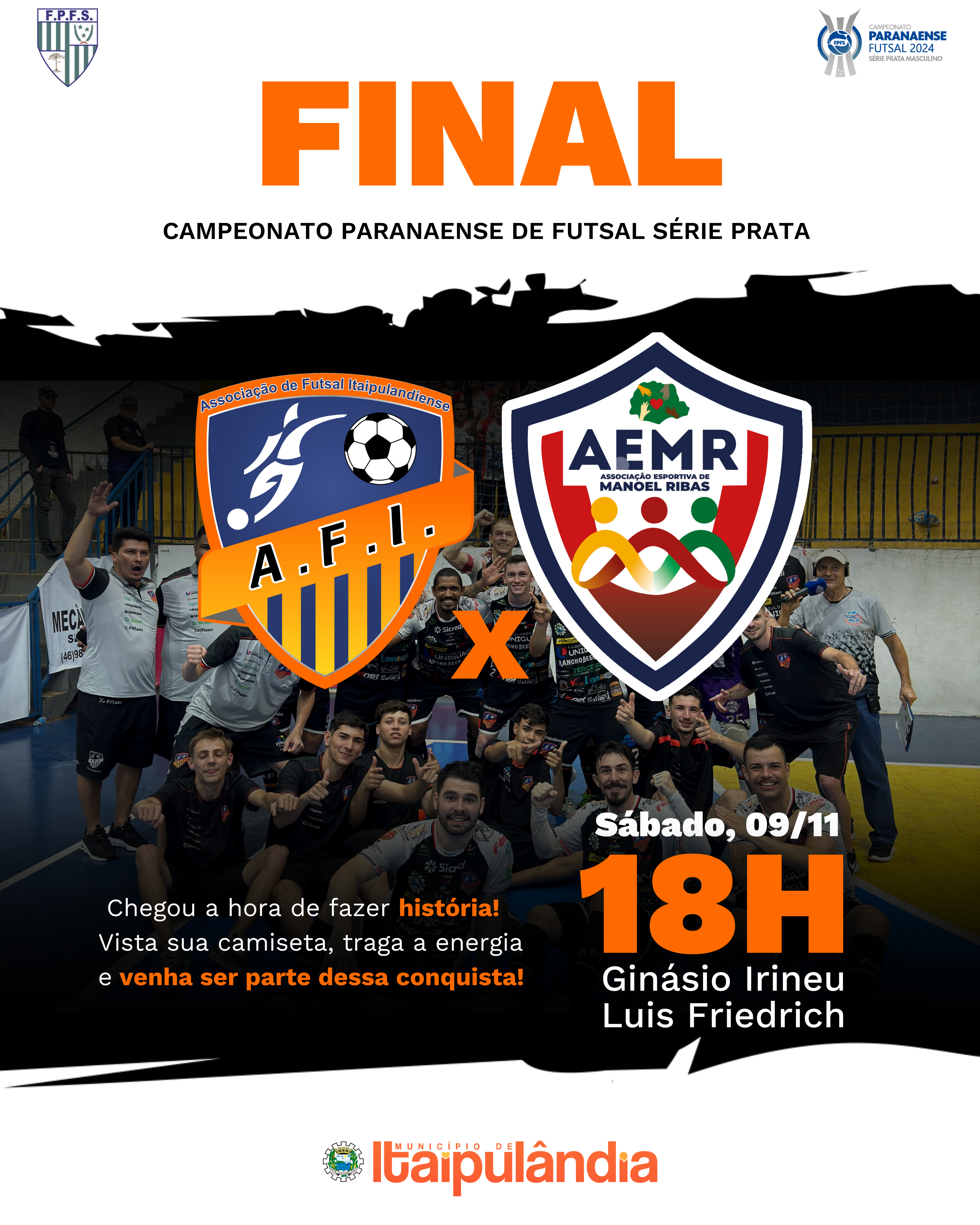 A grande final chegou, e queremos a quadra lotada para essa batalha! Neste sábado, dia 09, às 18h, nossa equipe de Itaipulândia enfrenta Manoel Ribas em busca do título!