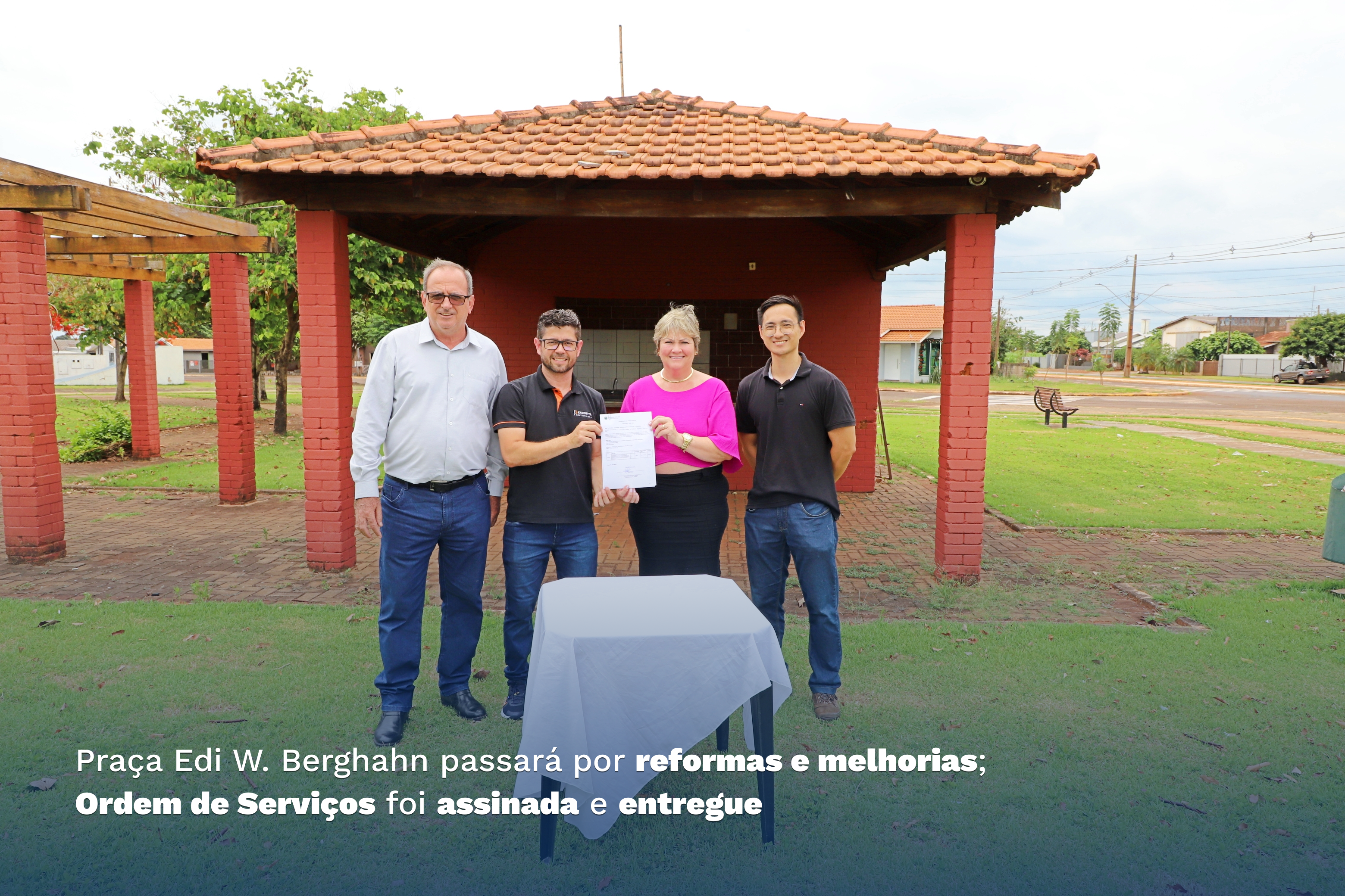 Praça Edi W. Berghahn passará por reformas e melhorias; Ordem de Serviços foi assinada e entregue