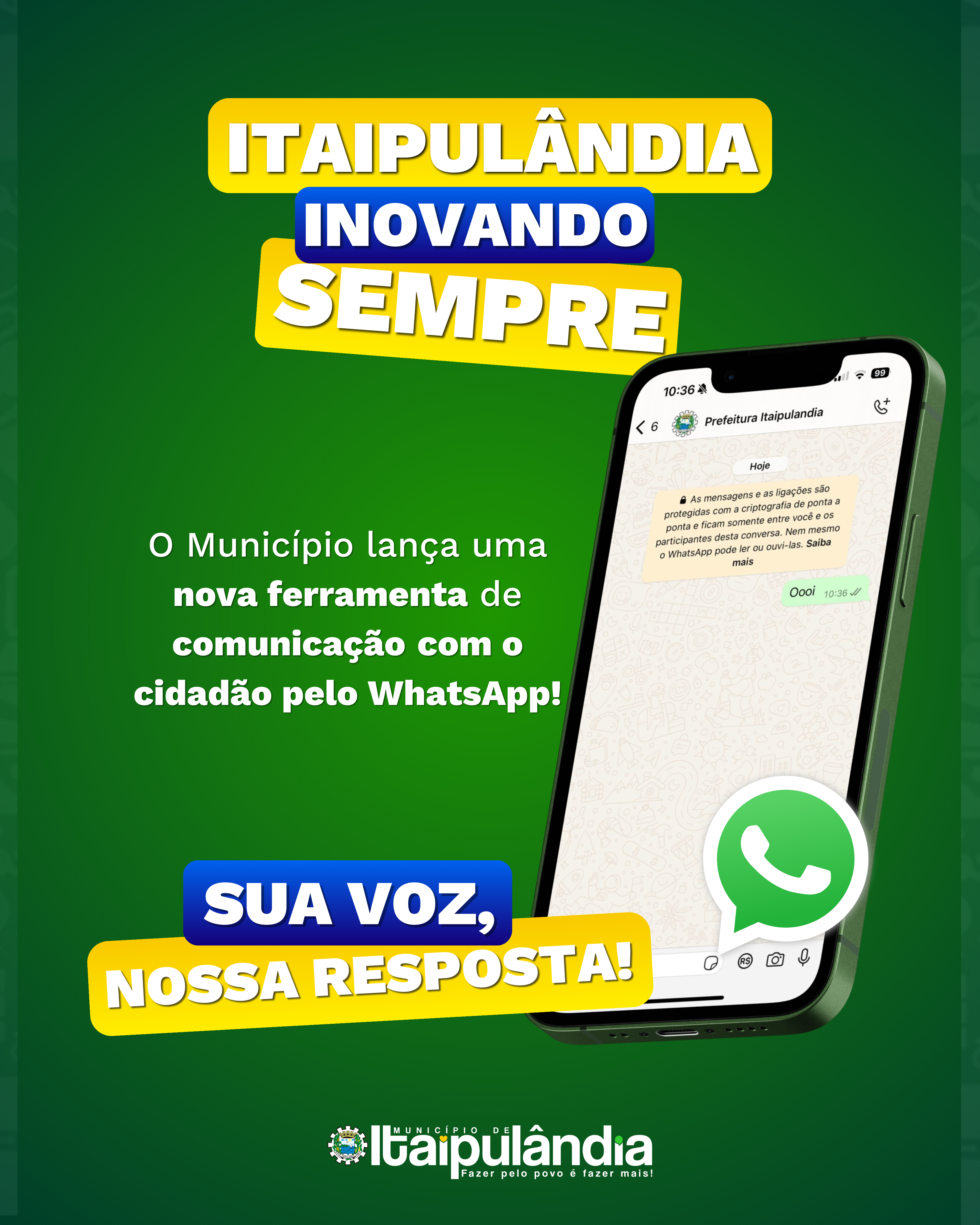🌐 Itaipulândia dá mais um passo rumo à transparência e à eficiência. Participe dessa nova era de comunicação pública e venha transformar, junto com a gente, a relação entre Prefeitura e cidadão!