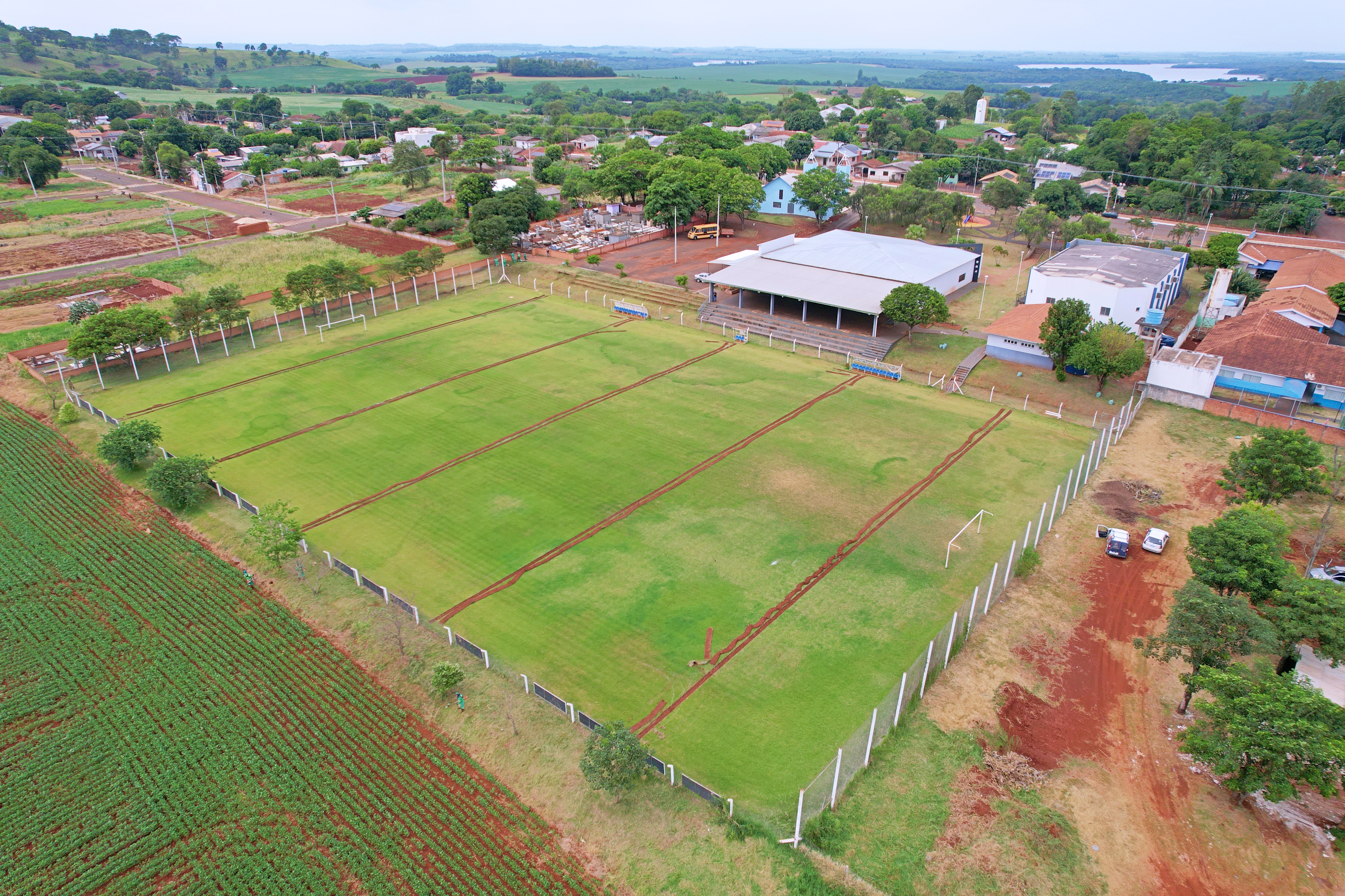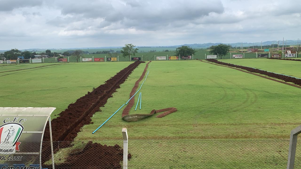 Esta semana ficará marcada para a comunidade esportiva do Caramuru: Tiveram início as obras de instalação do sistema de irrigação no campo de futebol local.