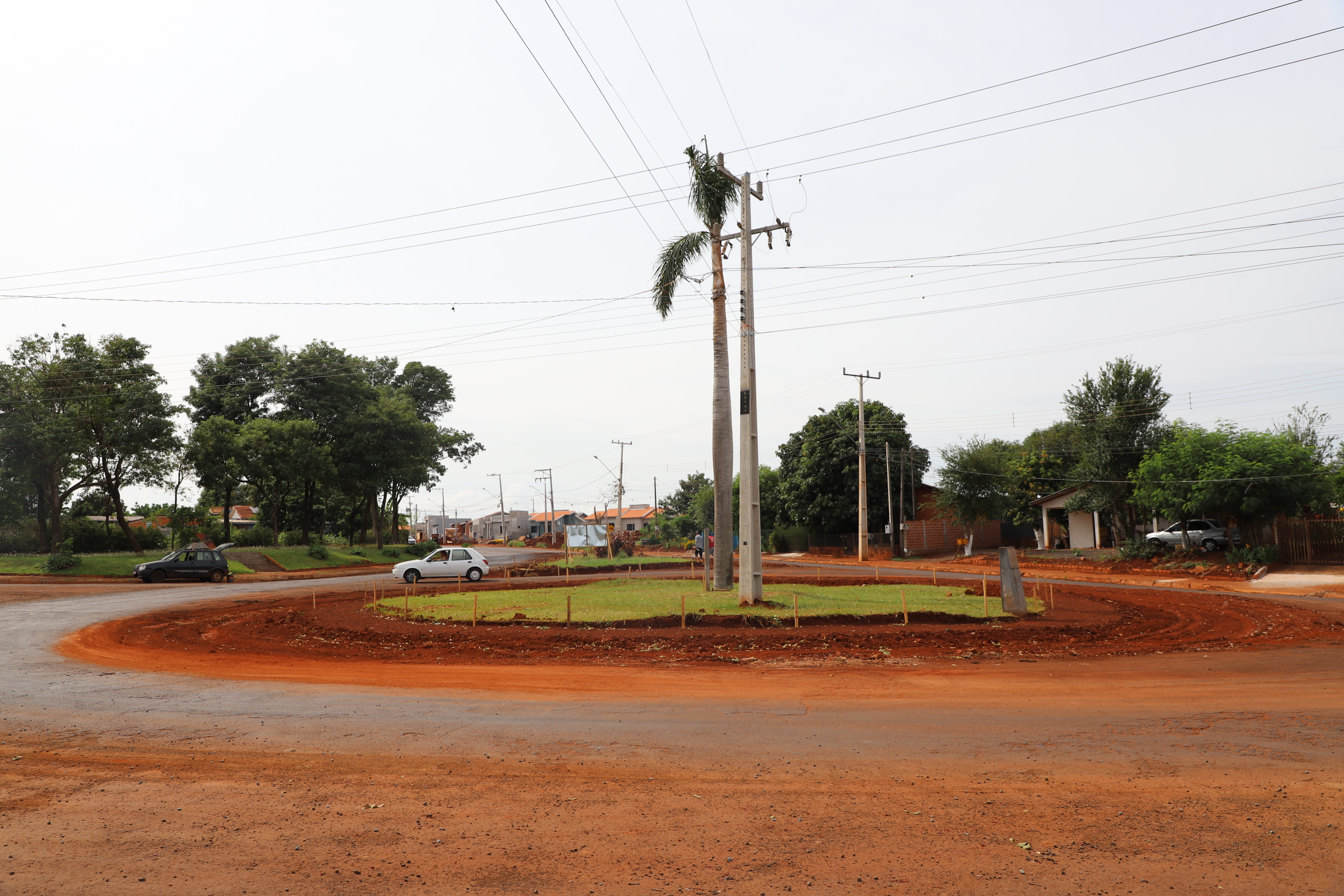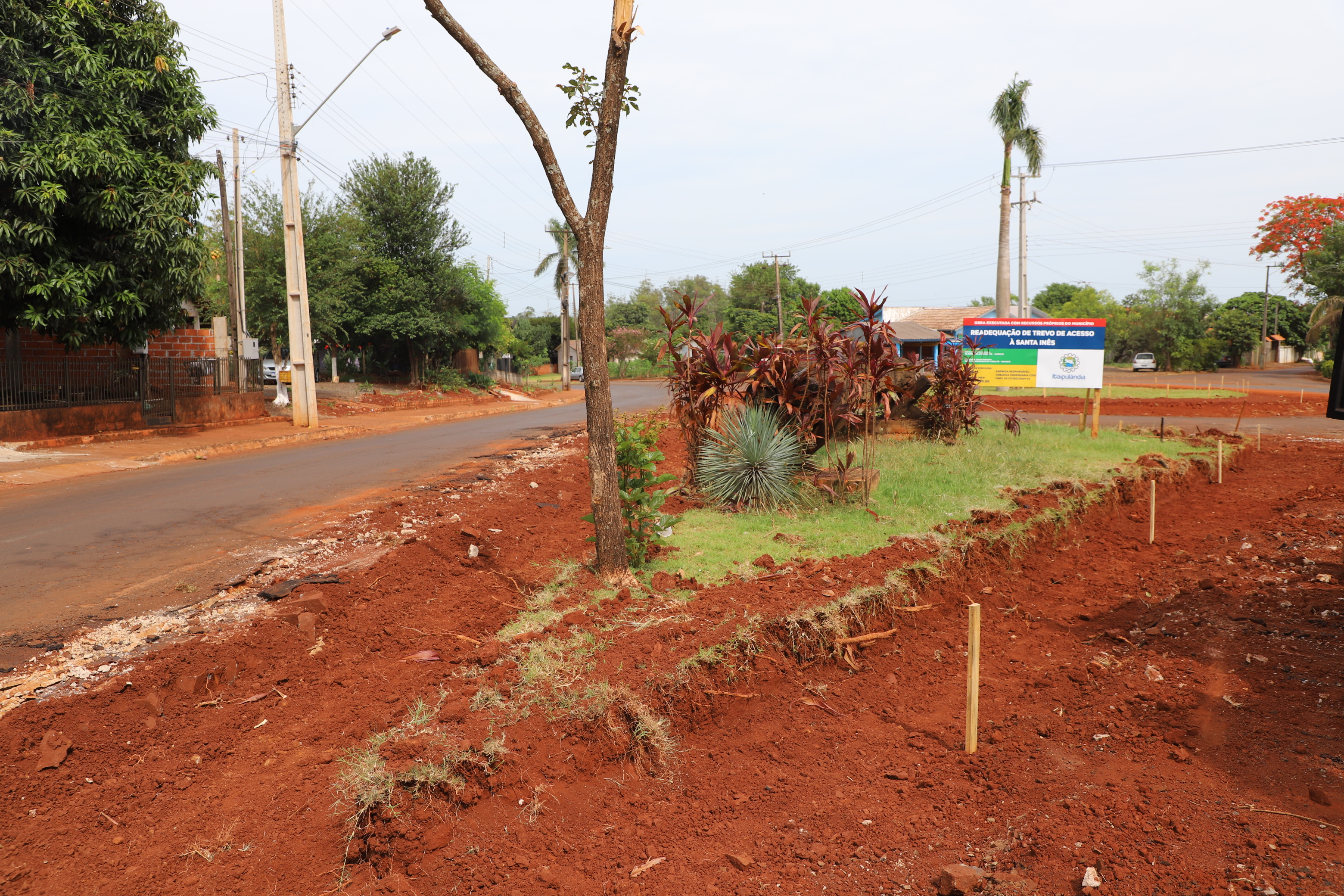 No local estão sendo implantados 161 metros lineares de meio-fio, 3.300 m2 de recapeamento asfáltico e colocação de paver no entorno do trevo, parte interna.
