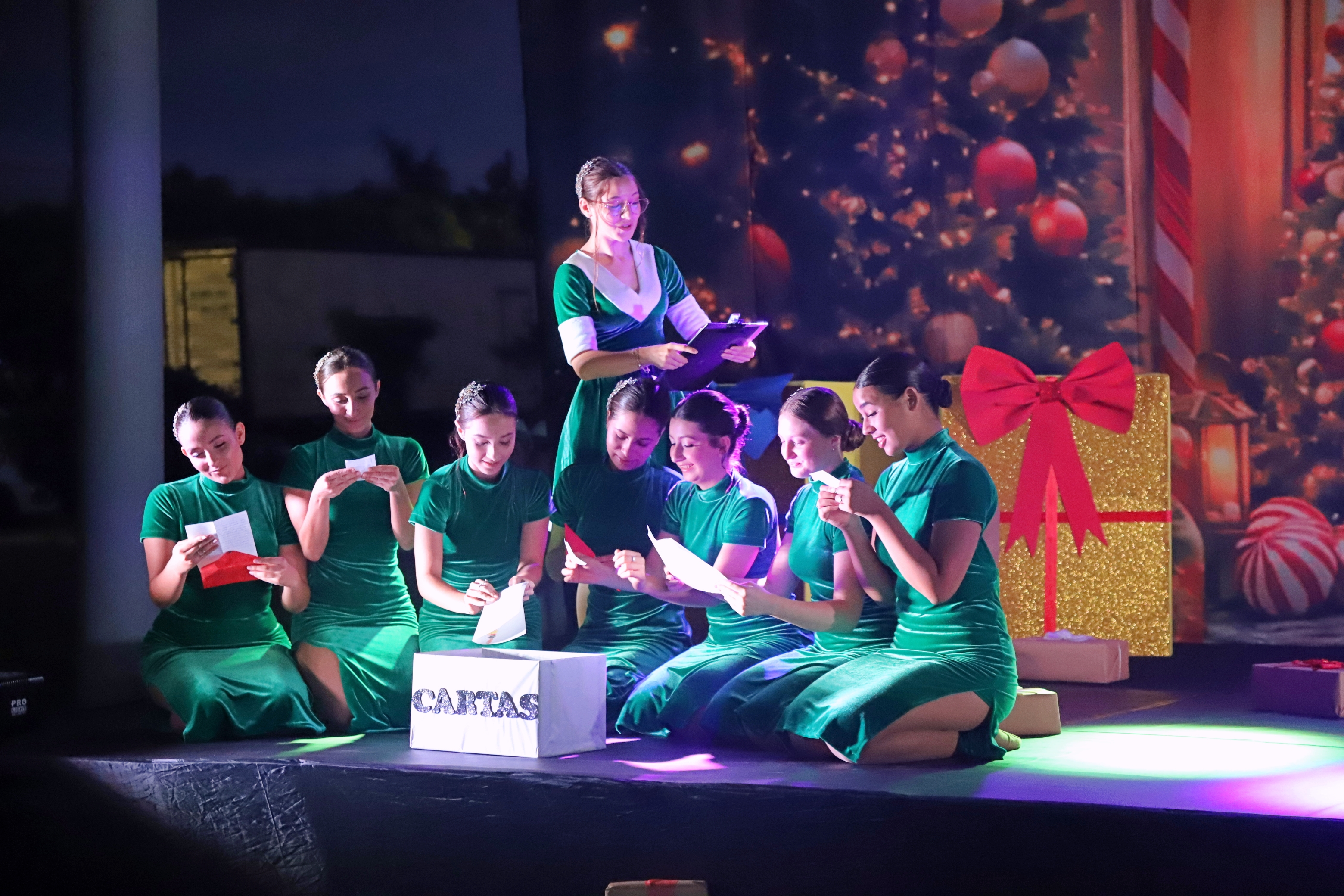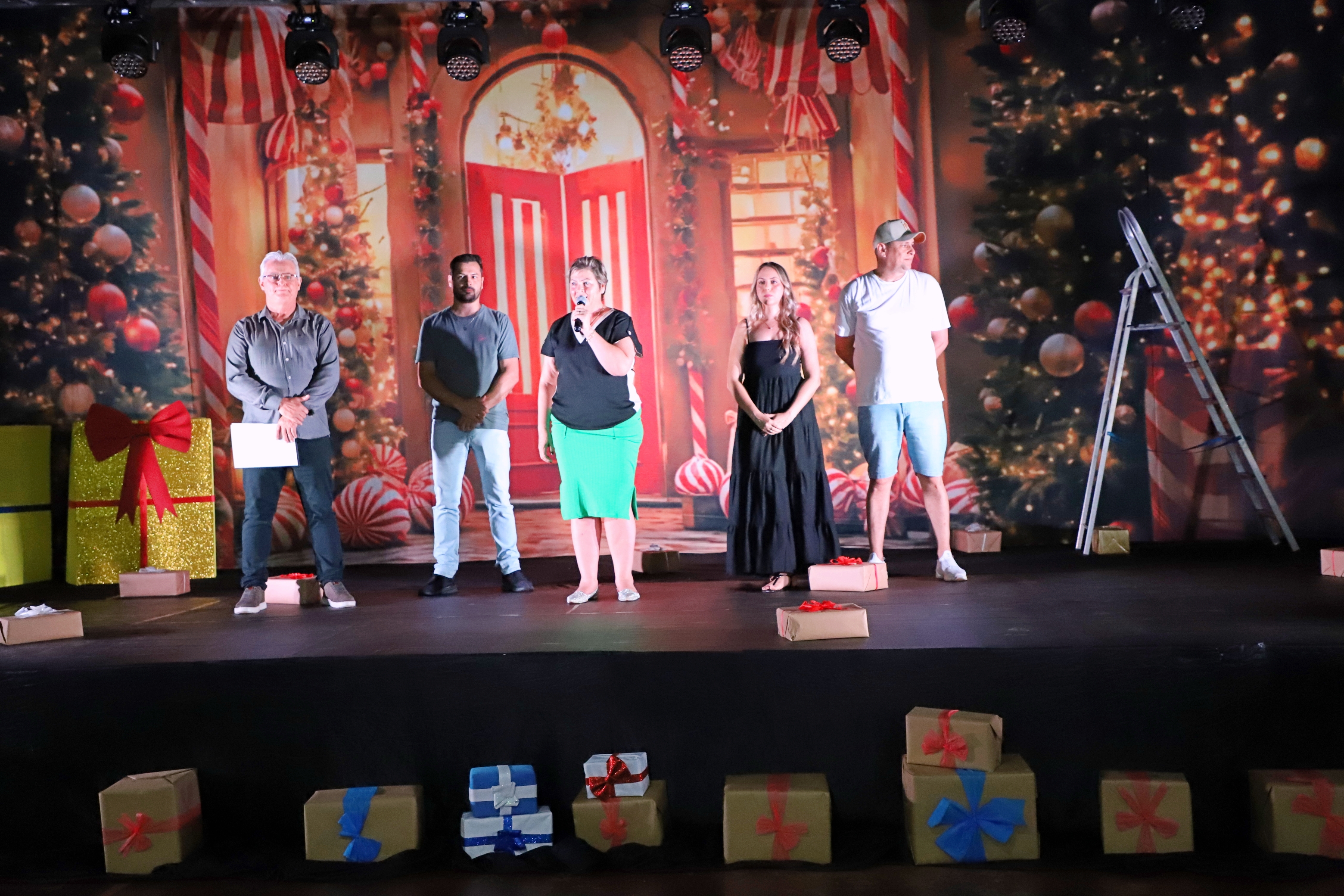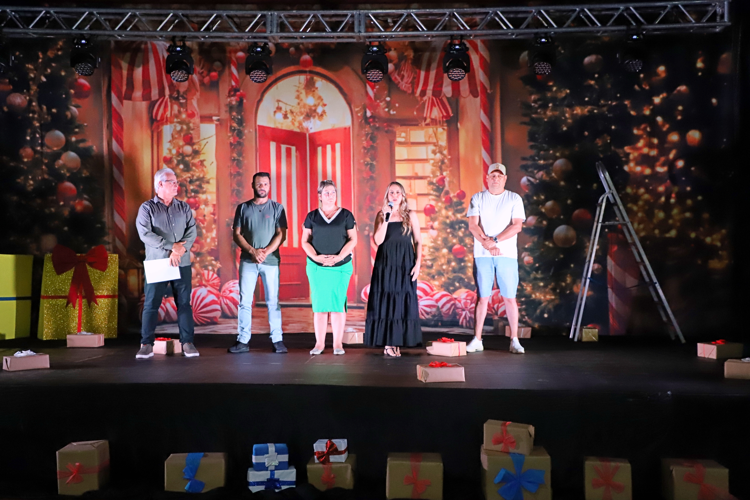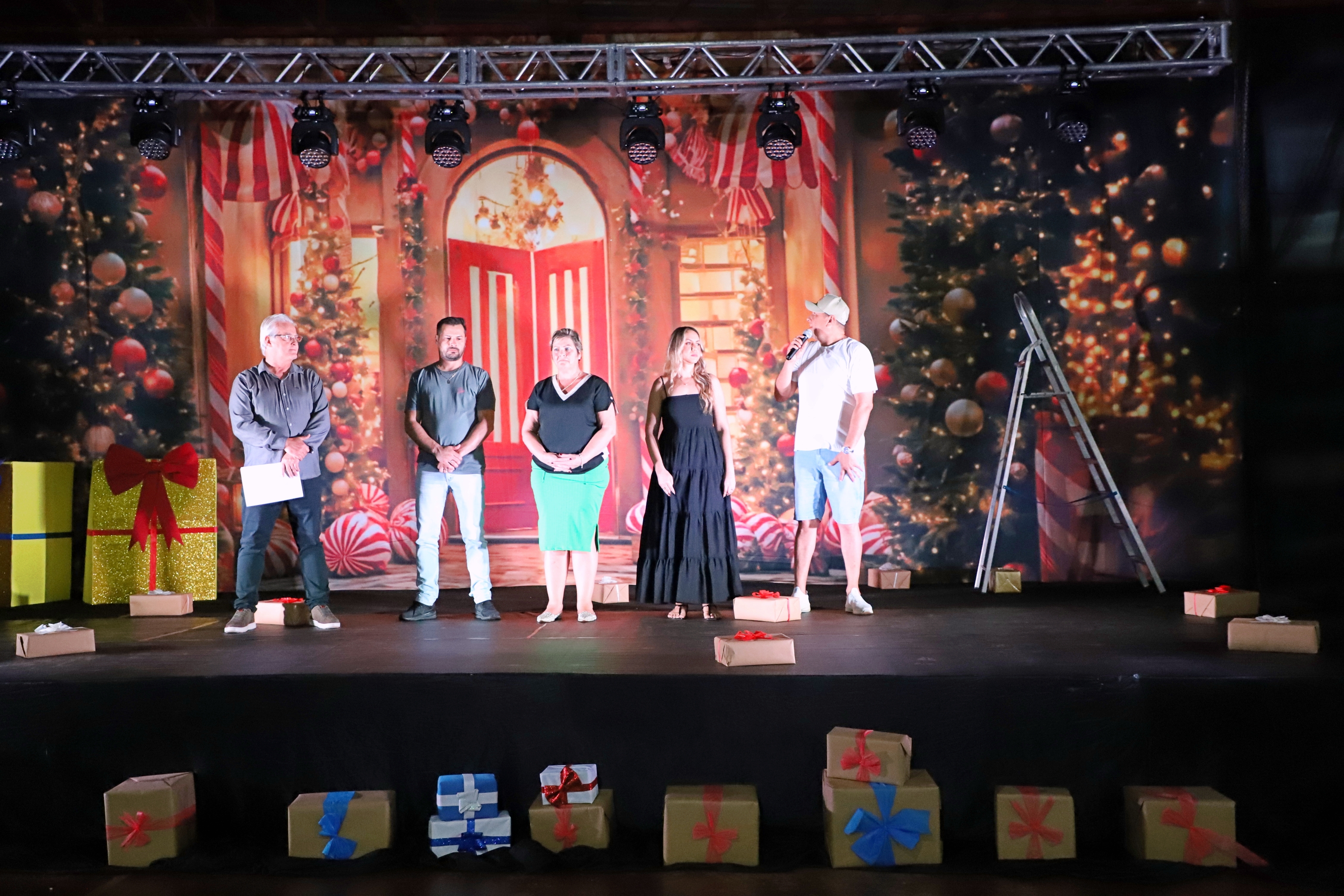 A encenação trouxe à cena personagens típicos do Natal, como Mamãe Noel e suas operárias, os duendes travessos, a Fada Açucarada, renas, bonecos de neve, pinheiros de Natal, flocos de neve, sinos, anjos e as estrelas do Norte e Sul. O espetáculo contou com a presença de autoridades locais: a Prefeita Cleide Prates, o Secretário de Cultura e Esportes Anderson Homem, a Secretária Interina de Cultura e Esportes Kelly Letícia Fernandes Donel, e o Diretor de Cultura Flávio Viana.