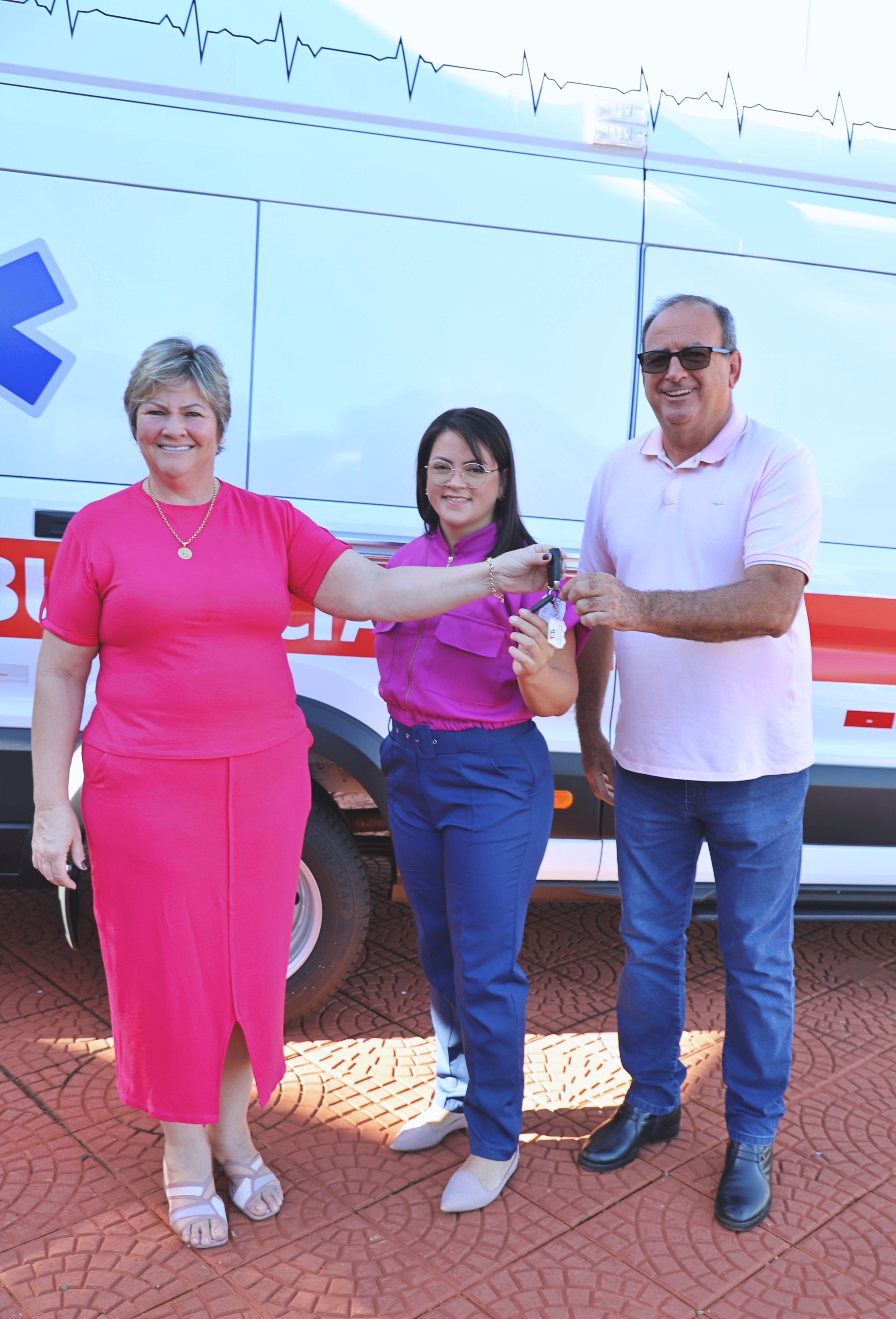Na manhã desta segunda-feira (16), a Prefeita Cleide Prates e o Vice-Prefeito Lindolfo Rui, efetuaram a entrega oficial das chaves de uma ambulância nova, para a Secretaria de Saúde do Município.