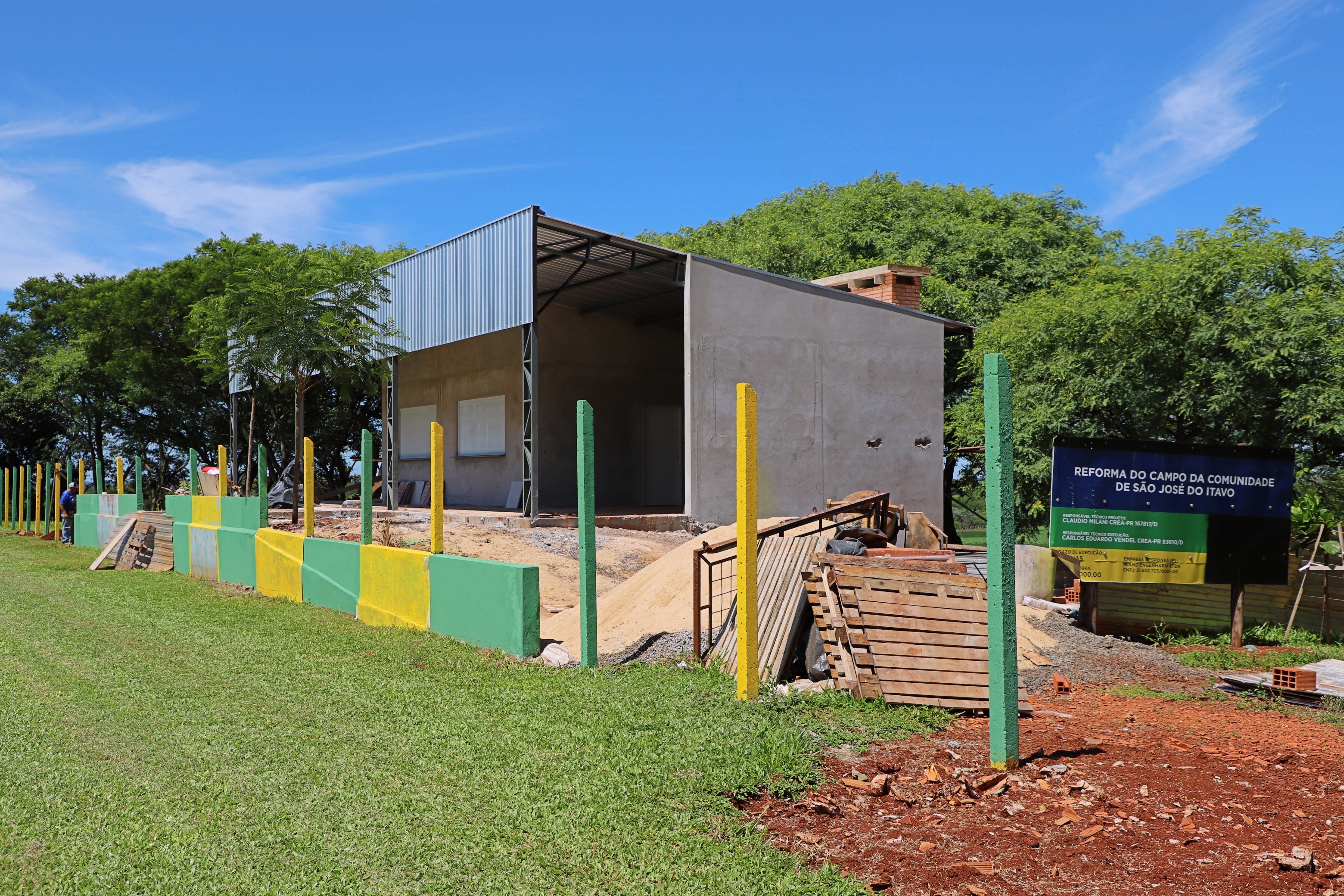 As obras terão uma área construída de 262,74 m2 contemplando copa, cozinha, banheiros, vestiários, sala para árbitros, além da troca de alambrado com mais de 1.000 m2, banco de reservas, traves novas e pintura de arquibancada.