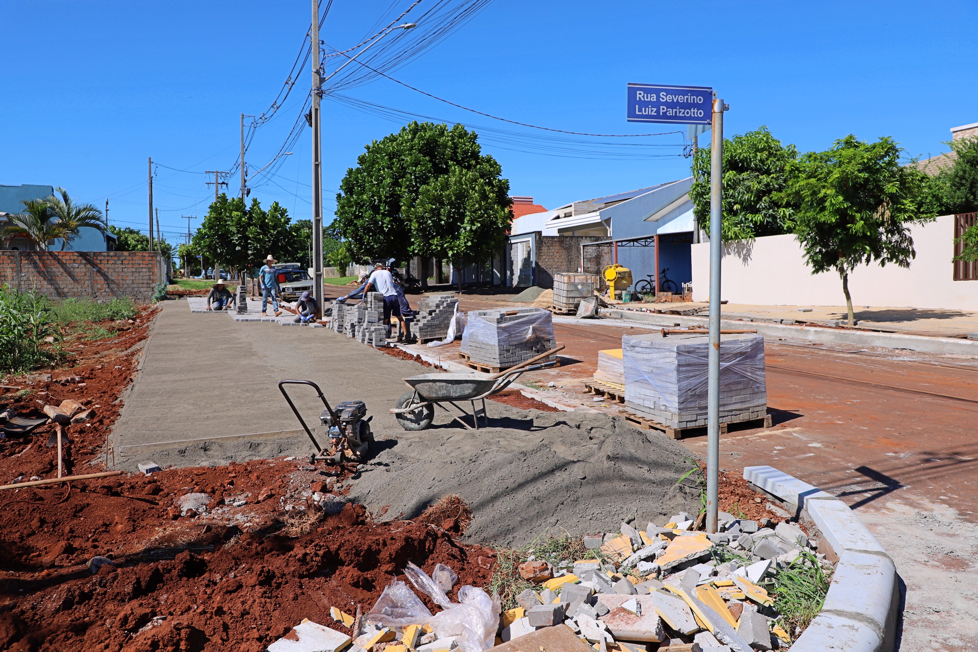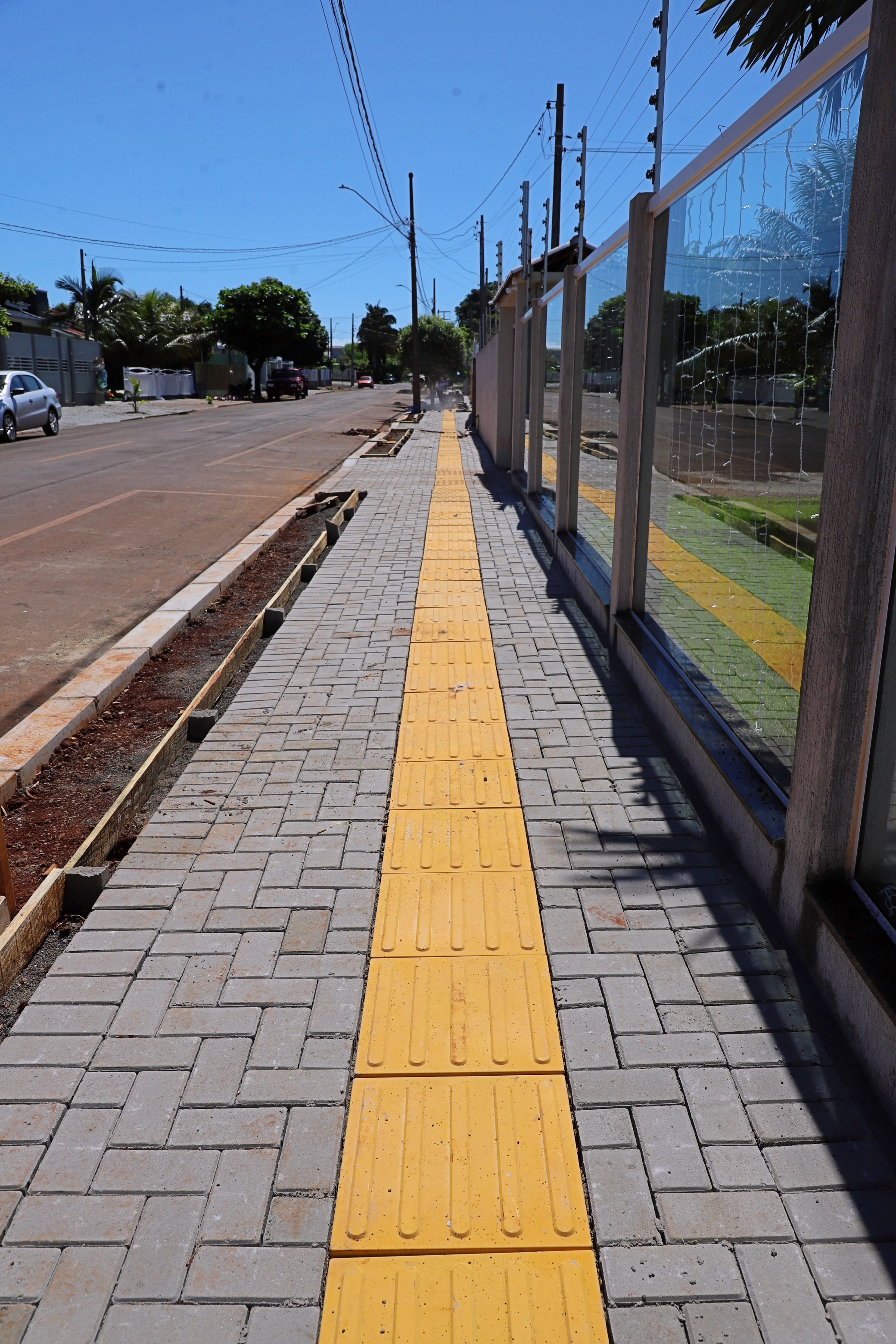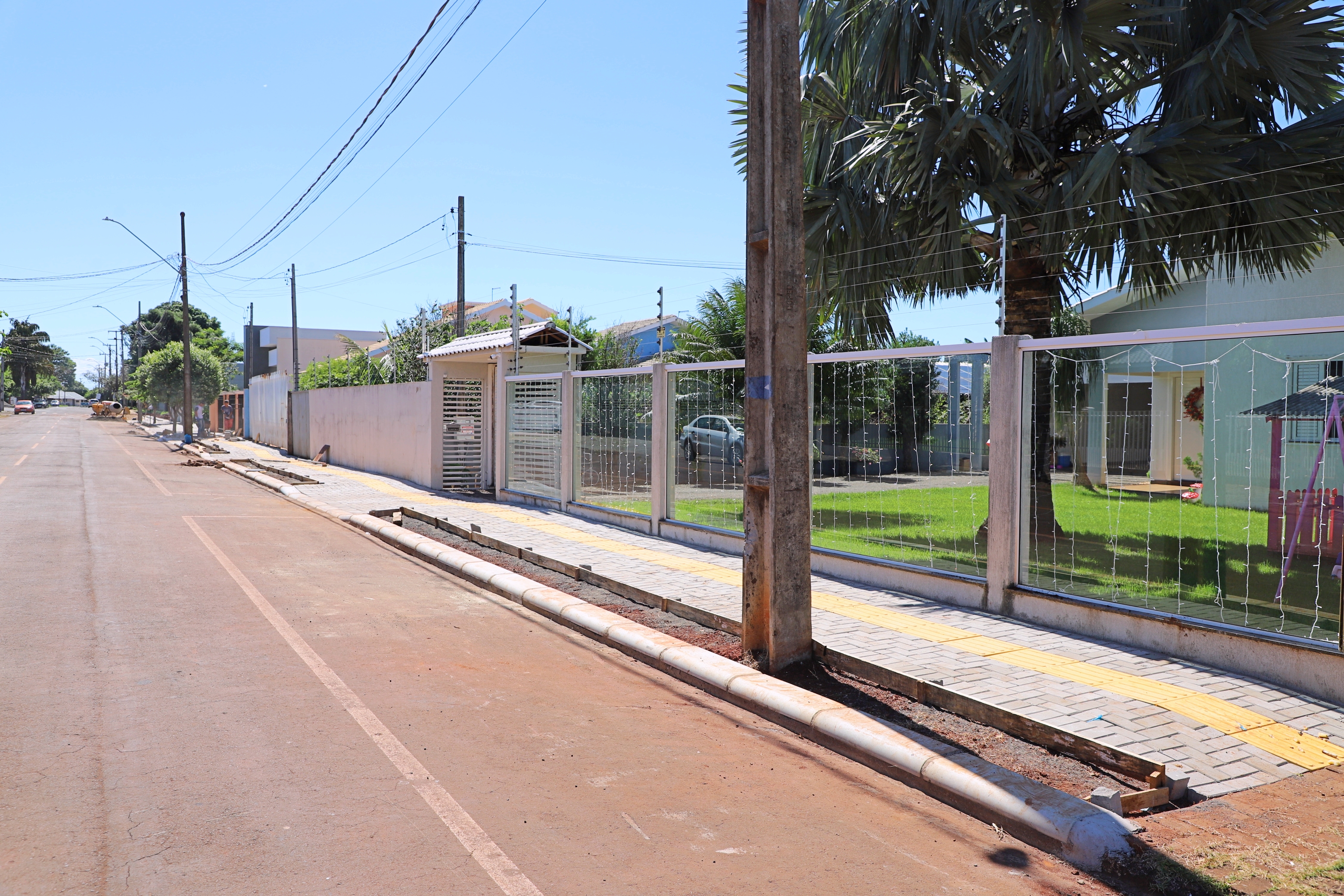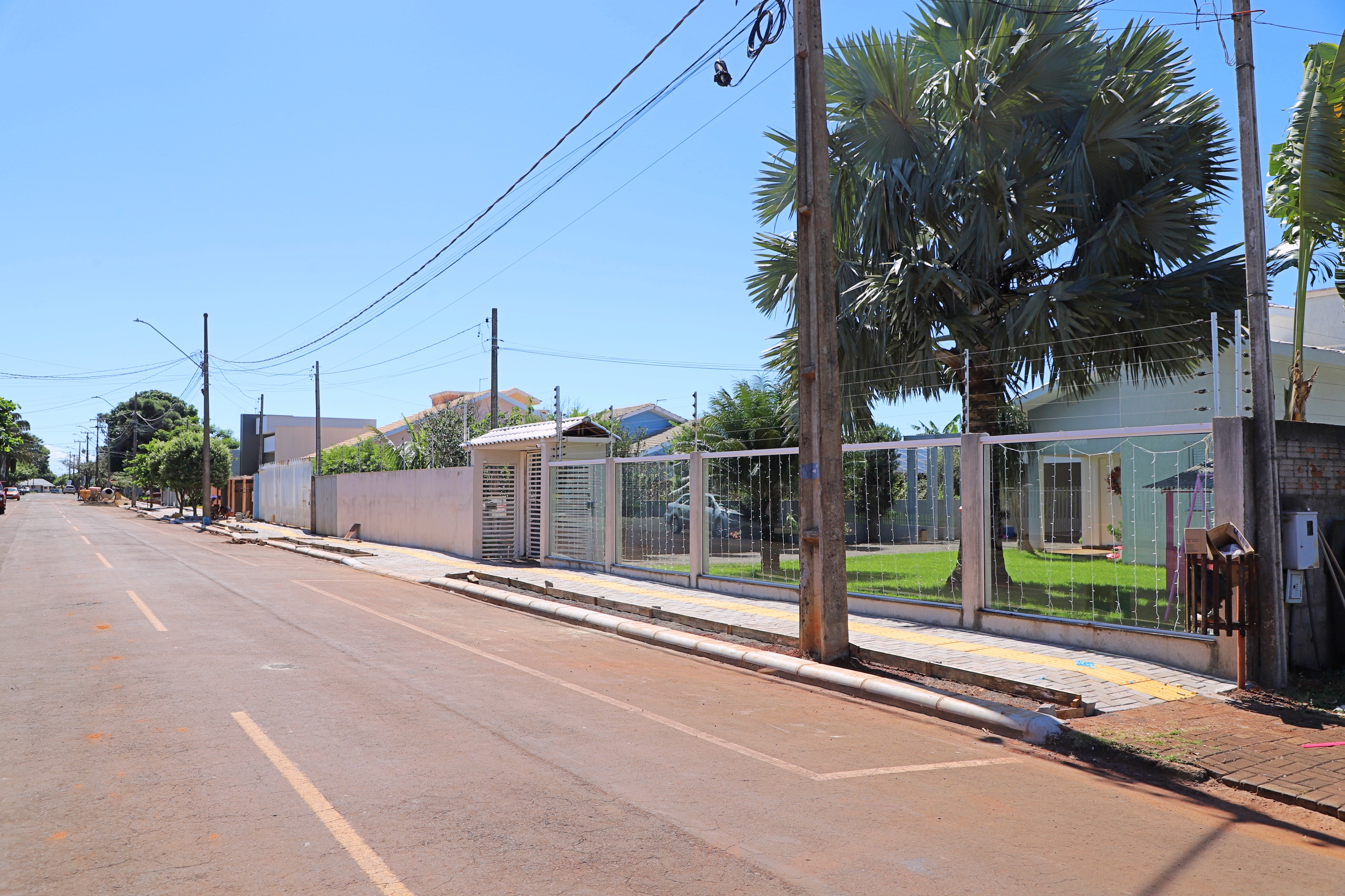 Já no Ipê são 289 m2 de calçadas com implantação de 136 metros lineares de meio-fio e 53 m2 de piso tátil na Rua Diva Carmelinda Zeni Facione.