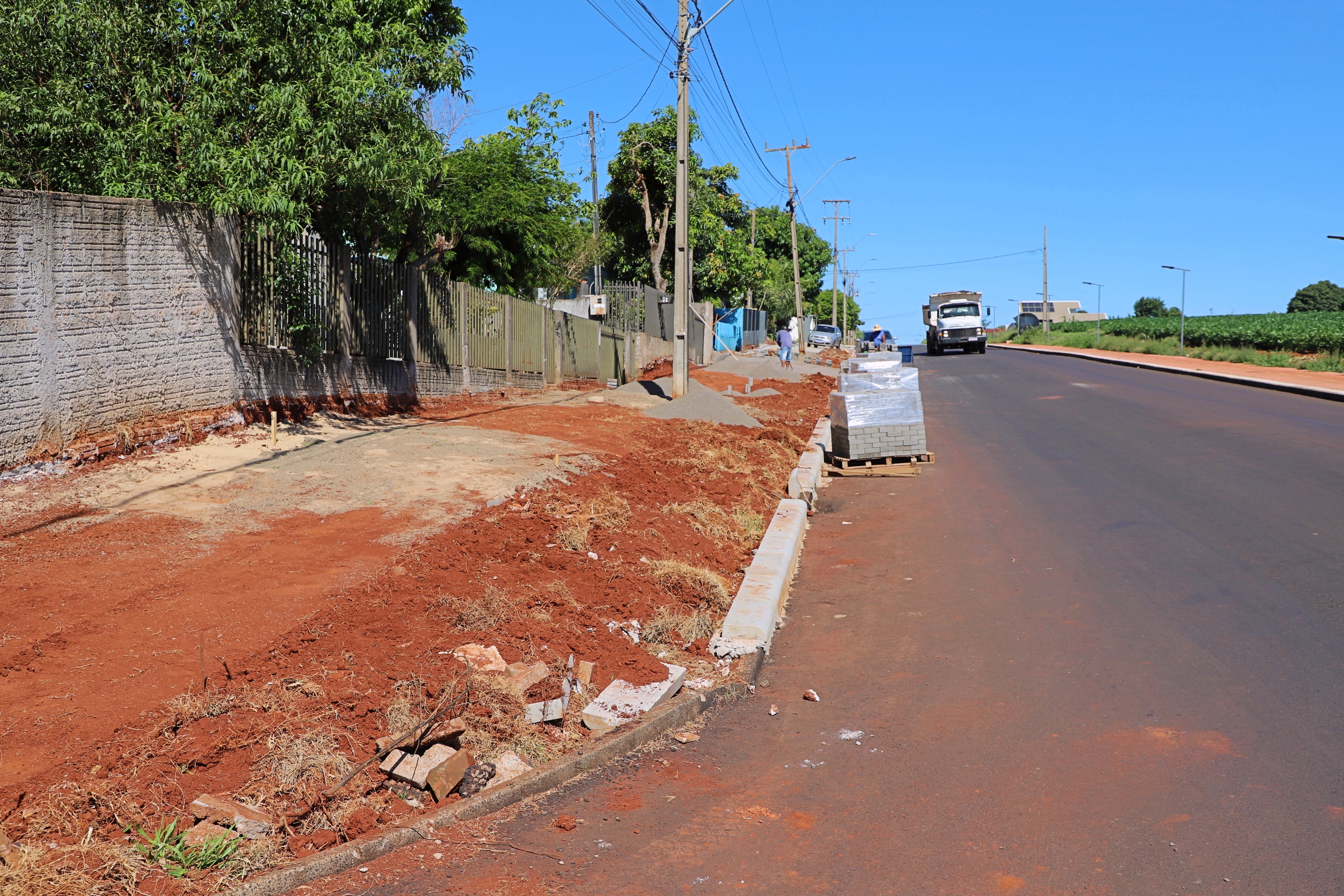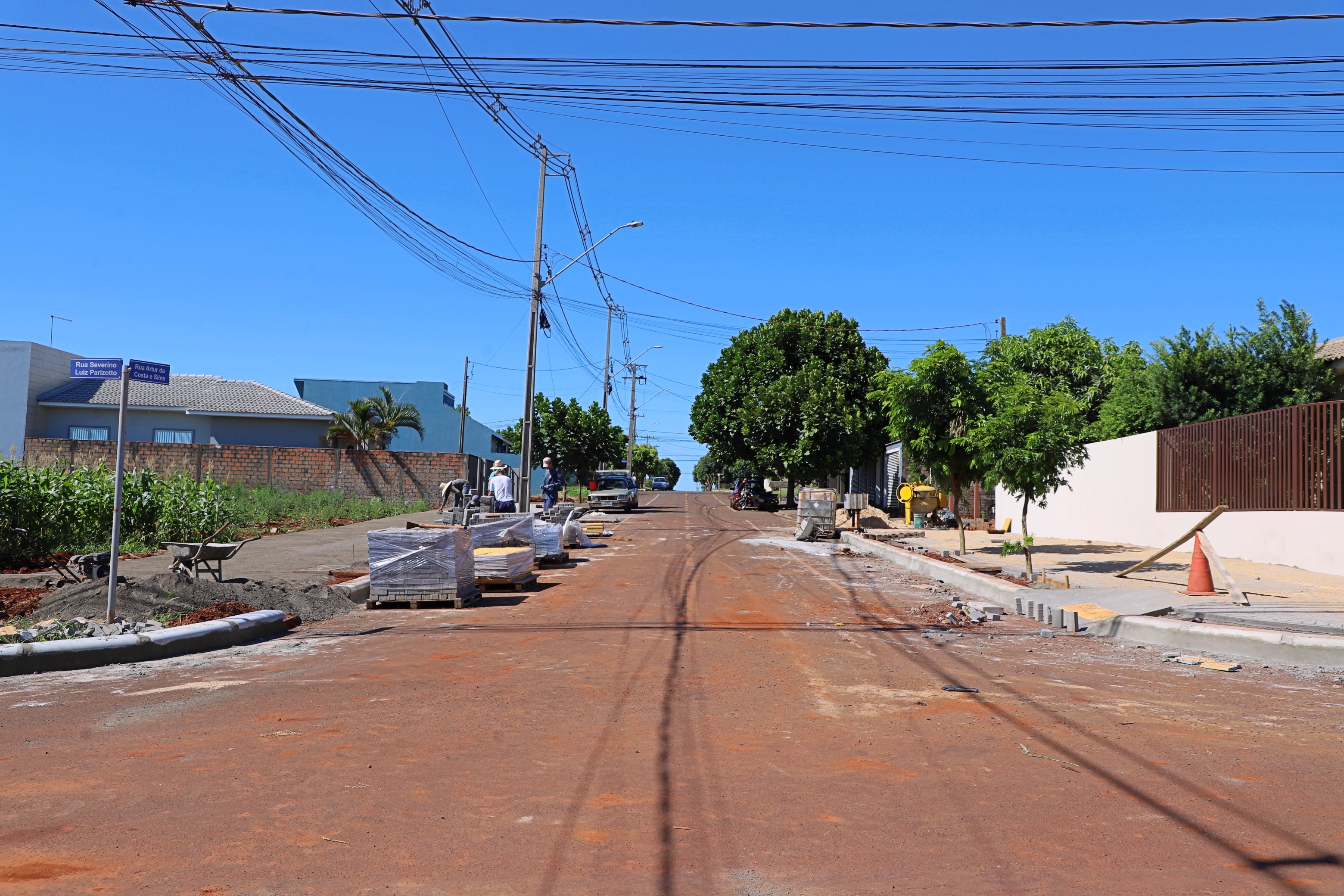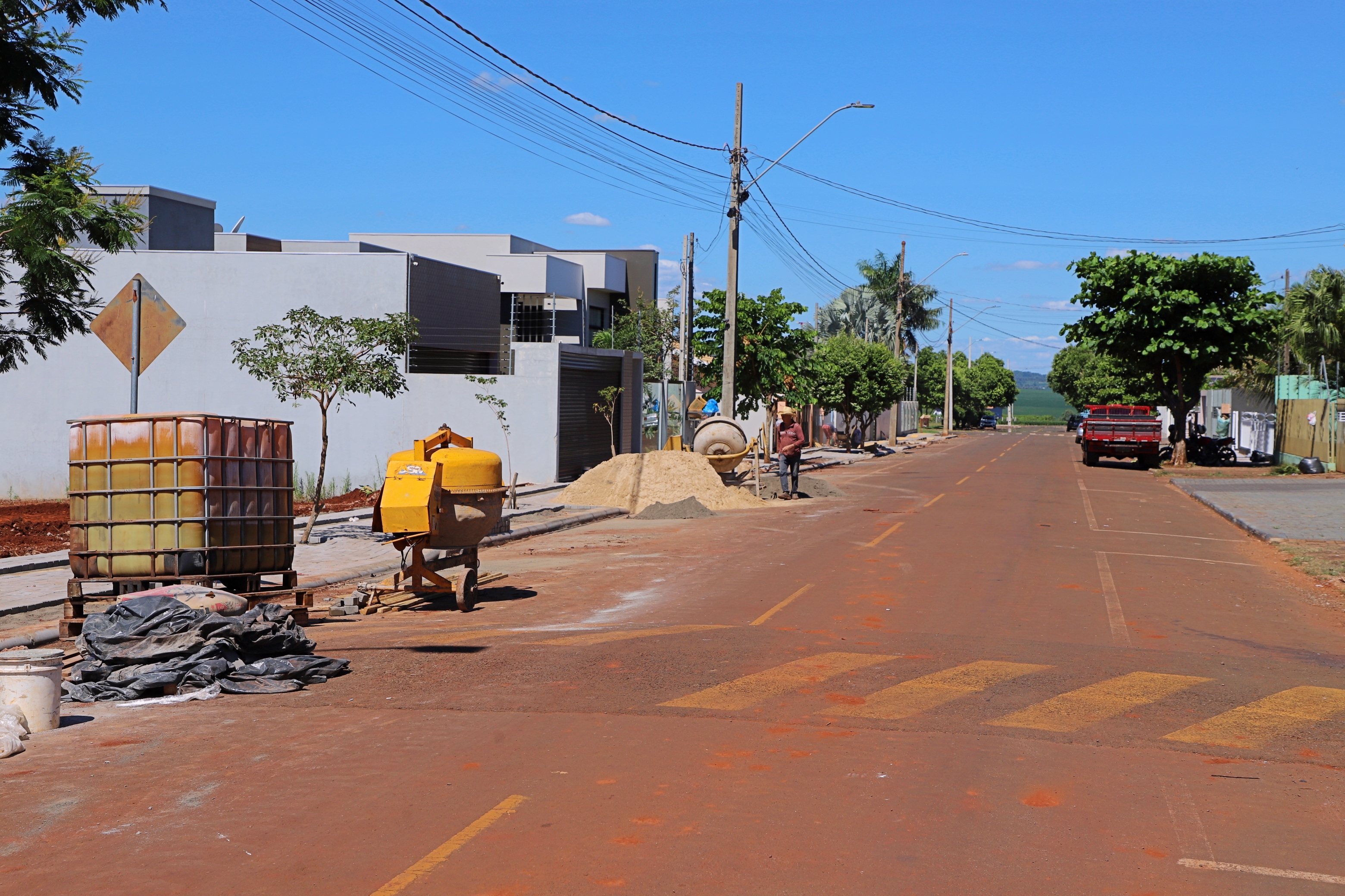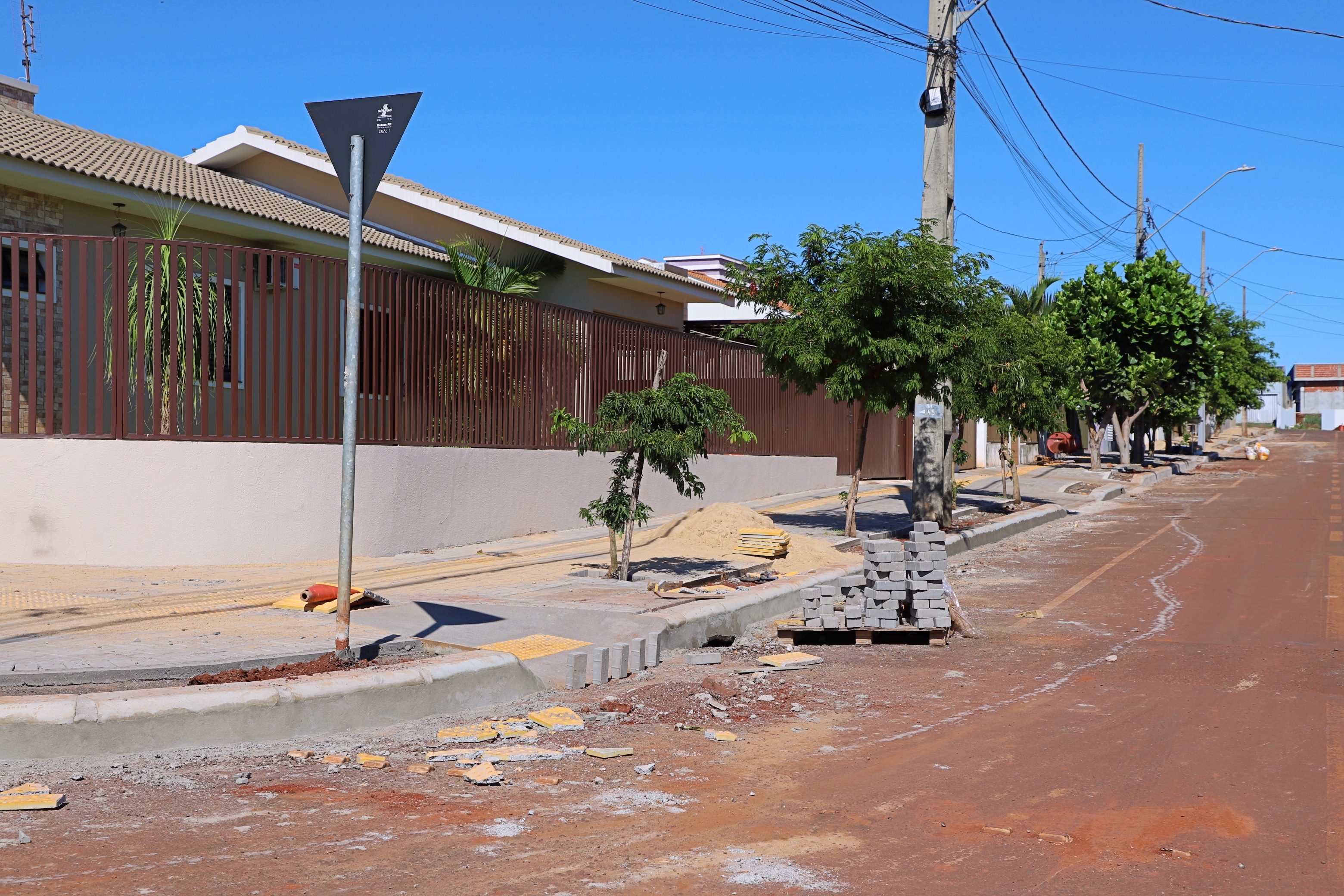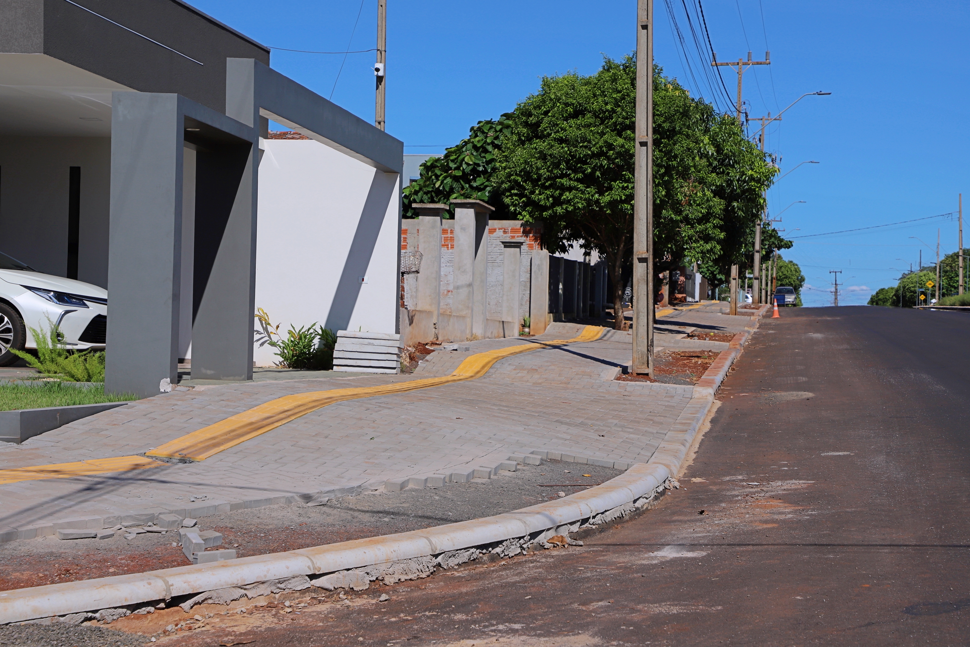 Já no Ipê são 289 m2 de calçadas com implantação de 136 metros lineares de meio-fio e 53 m2 de piso tátil na Rua Diva Carmelinda Zeni Facione.