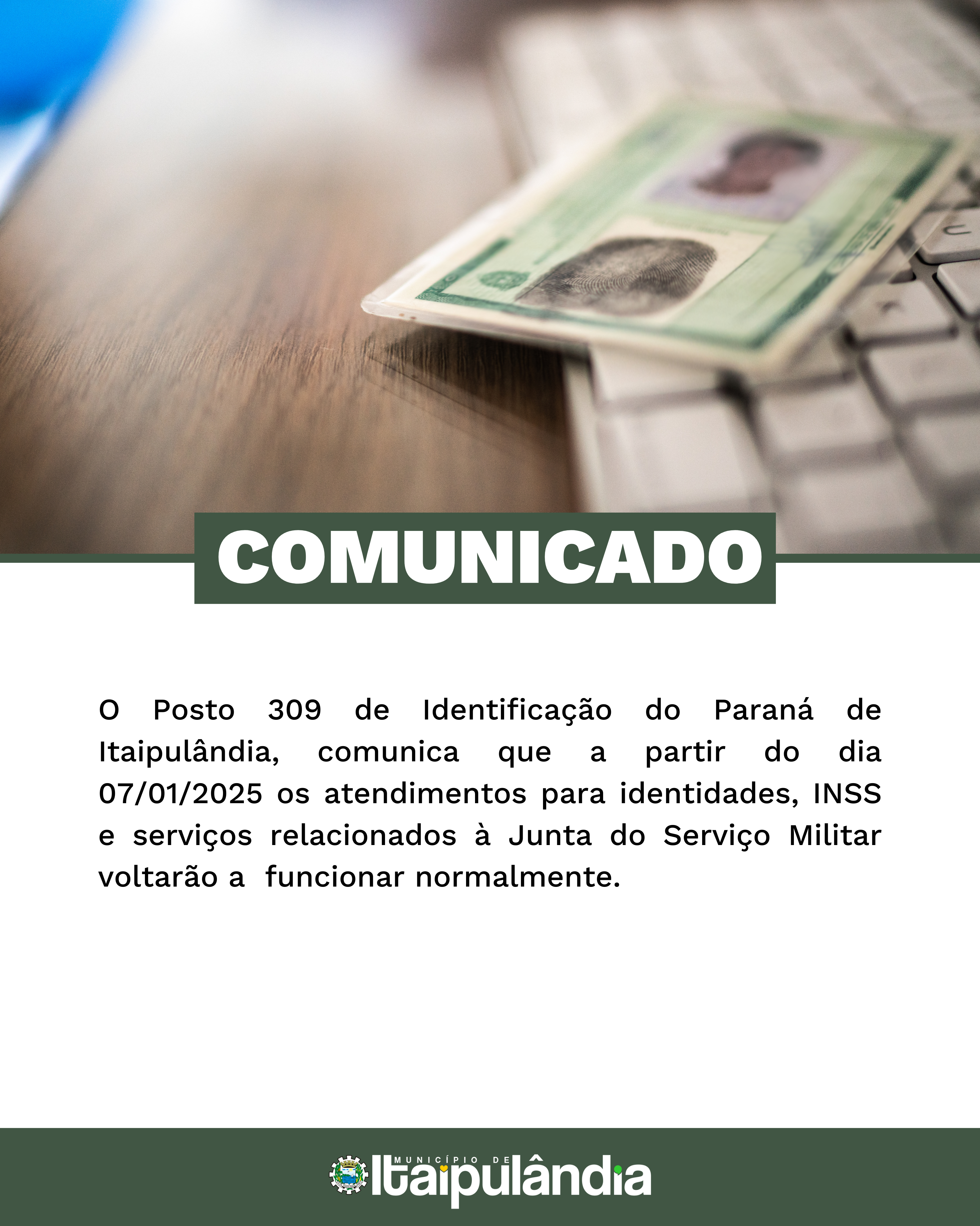 Confira o comunicado na imagem.