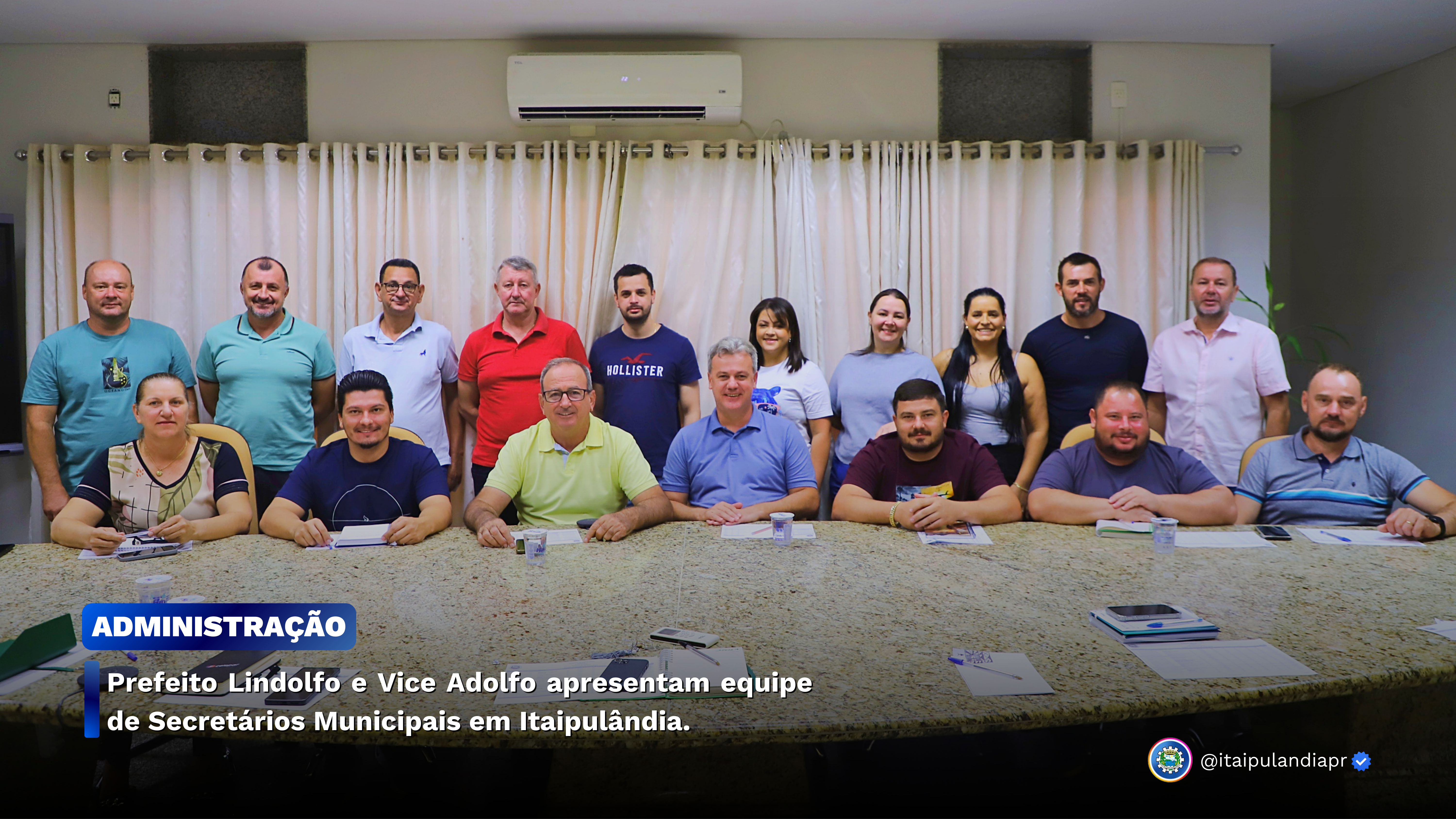 Na manhã desta quinta-feira (09), o Prefeito Lindolfo Martins Rui e o Vice-Prefeito Adolfo Florêncio Preis, anunciaram oficialmente os nomes que comporão o primeiro escalão da gestão municipal em Itaipulândia. O anúncio ocorreu na sala de reuniões do Paço Municipal Tancredo Neves. Foram apresentados os 14 Secretários Municipais e o Chefe de Gabinete.