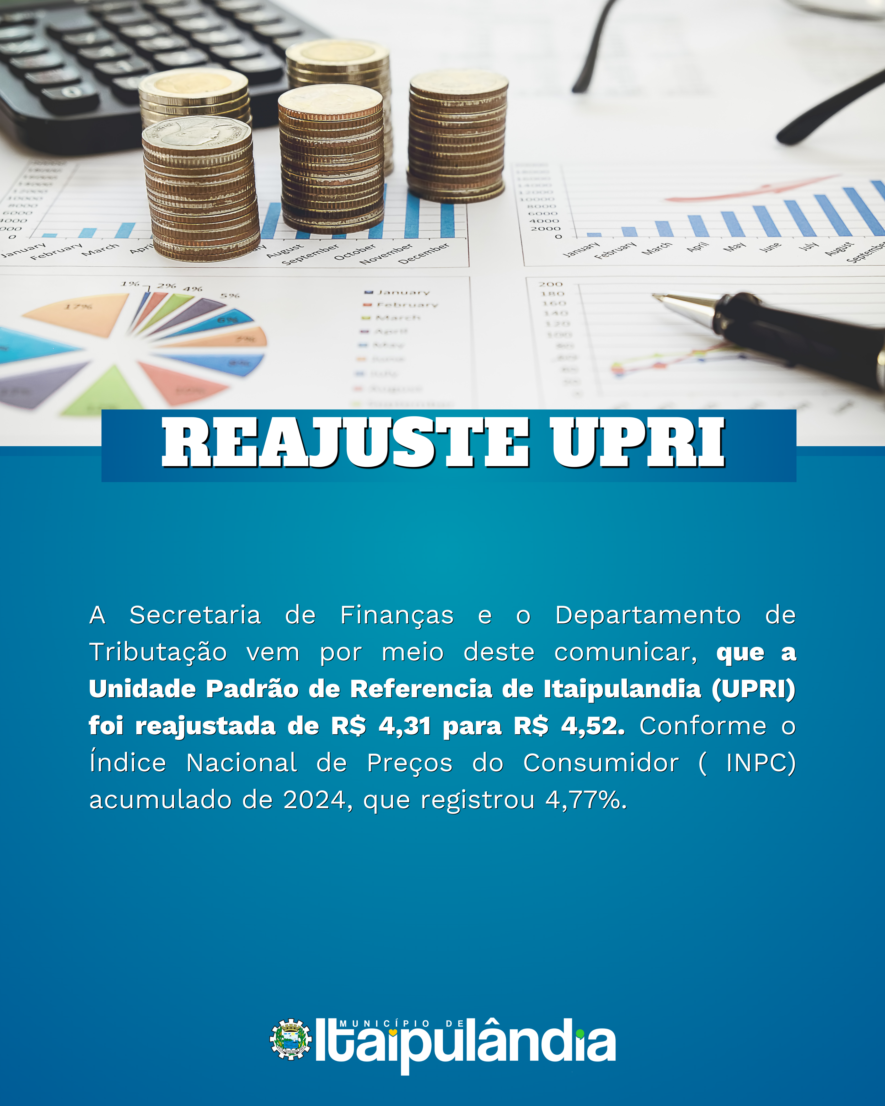 O valor da UPRI (Unidade Padrão de Referência de Itaipulândia) foi reajustado!