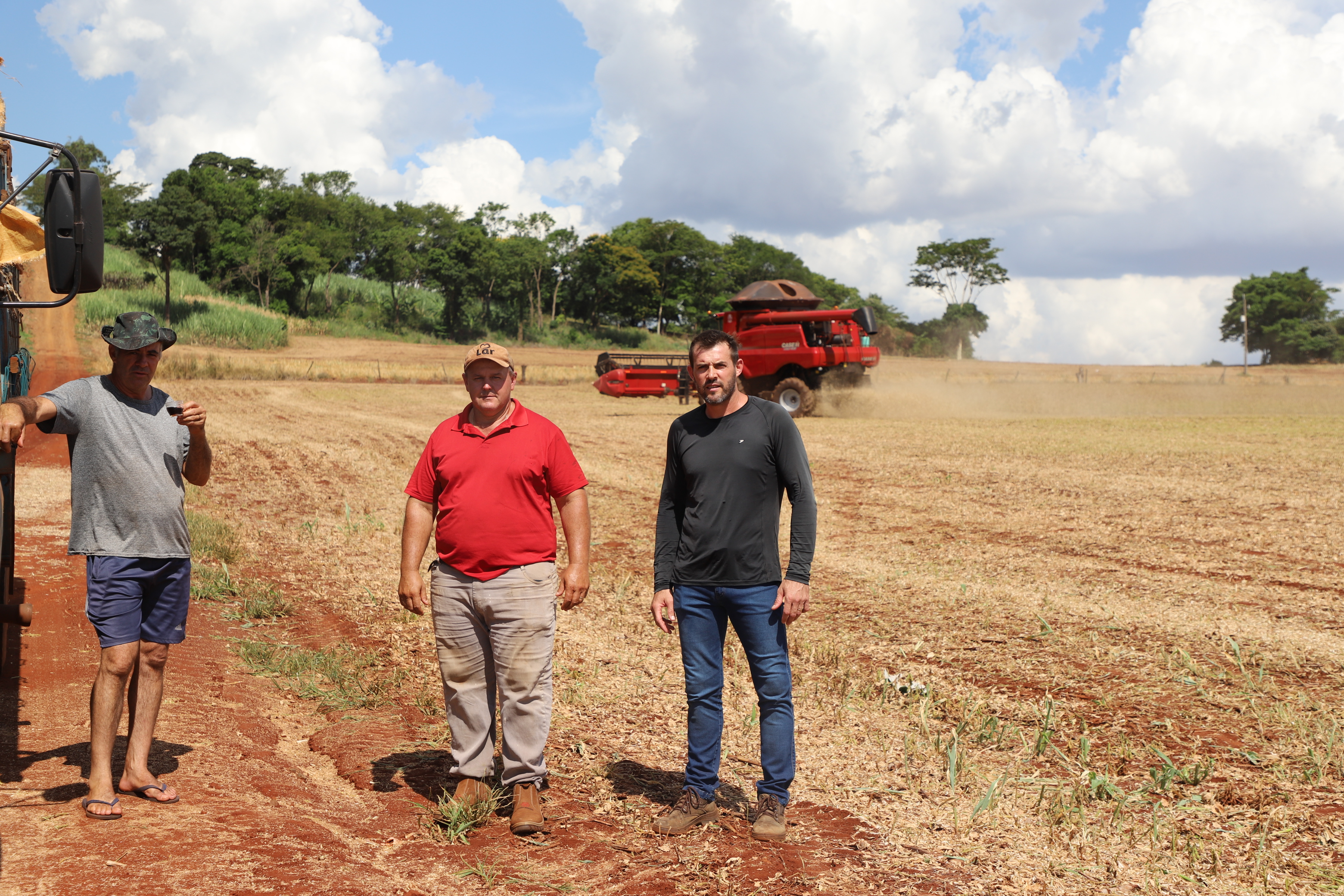 A região Oeste do Paraná iniciou a colheita da safra de soja e em Itaipulândia as máquinas não param. Na tarde de segunda-feira (13), o Secretário de Agricultura Rodrigo Pavinatto visitou algumas lavouras que estão em fase de colheita. As lavouras visitadas ficam em São José do Itavó e de acordo com informações dos proprietários, a safra deverá ter uma perda significativa.