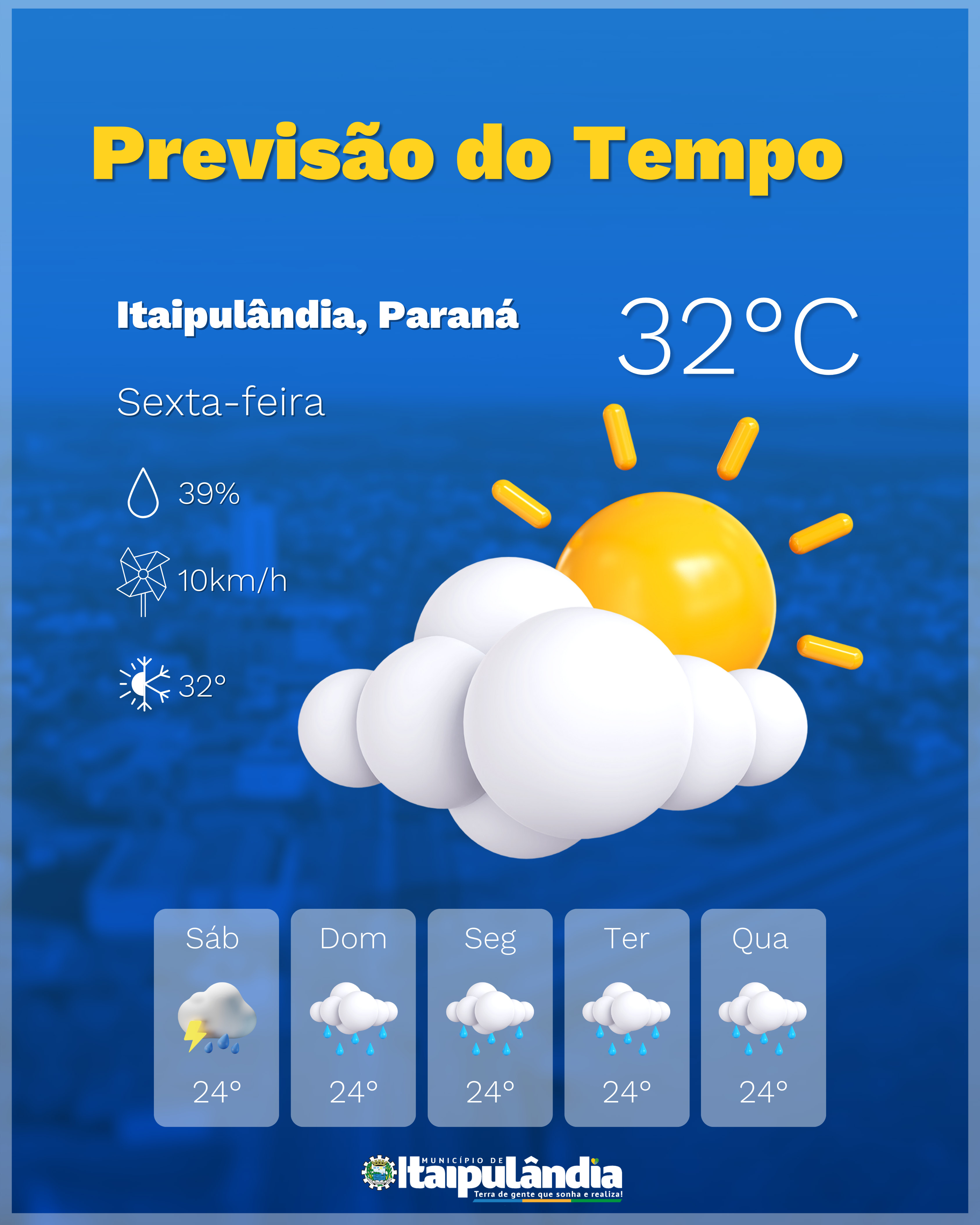 Confira o que o clima reserva para Itaipulândia neste fim de semana! Será que teremos aquele solzinho pra curtir ou uma chuvinha abençoada pra refrescar?