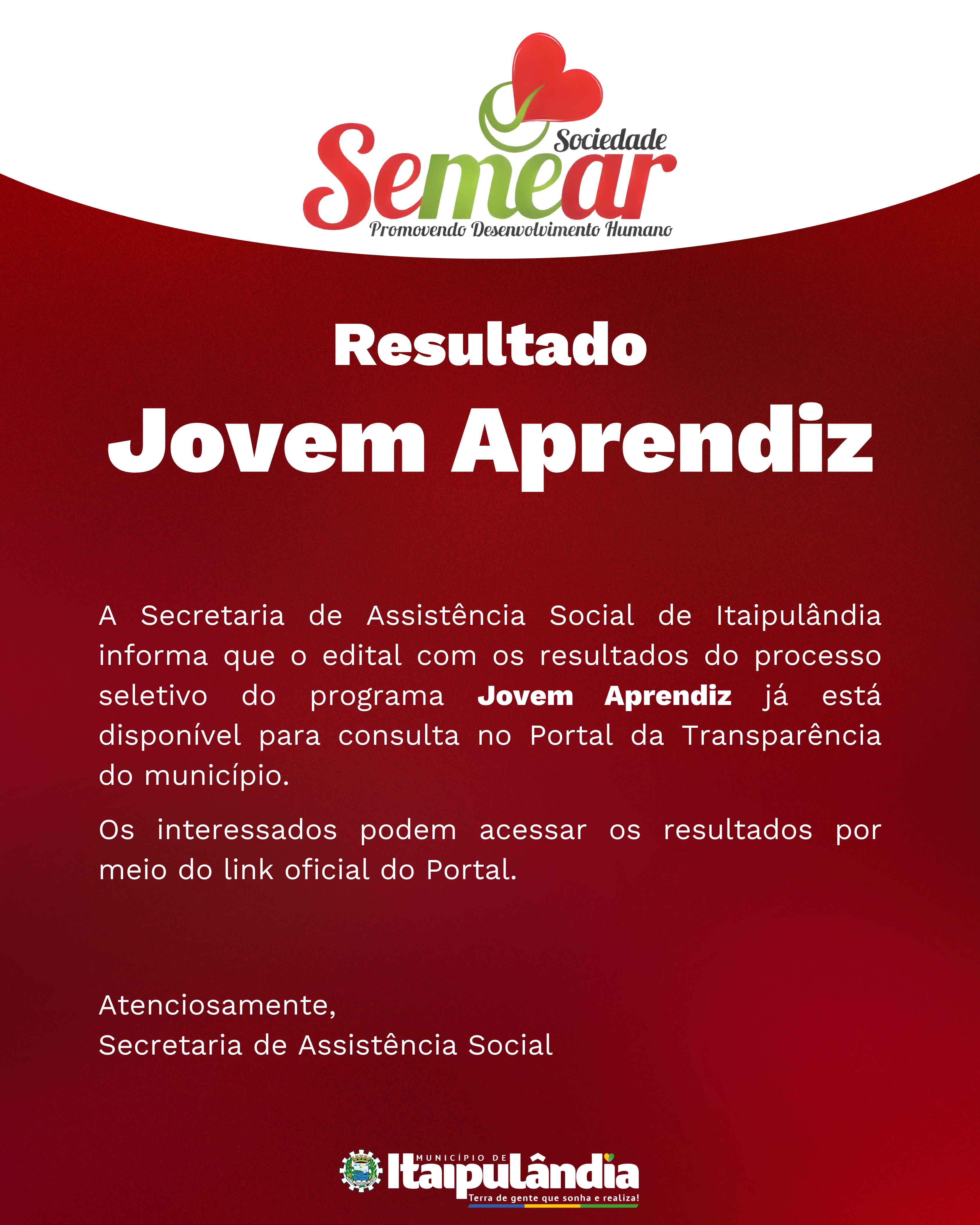 O edital com os resultados do processo seletivo do programa Jovem Aprendiz já está disponível para consulta no Portal da Transparência do município.