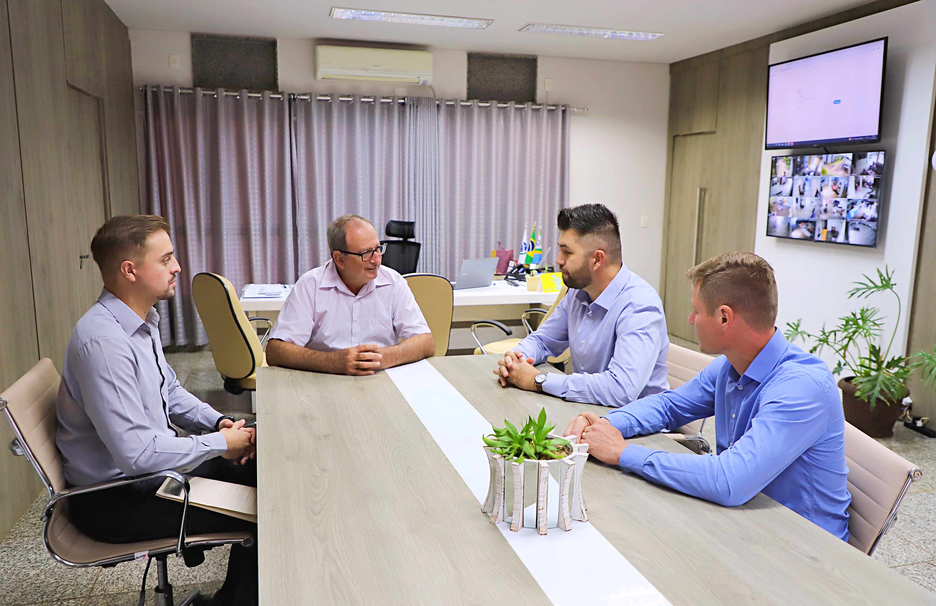 Com a finalidade de estreitar laços de relacionamento e disponibilizar a equipe para parcerias futuras e ações entre a instituição e o Poder Público, representantes do Sicredi estiveram no Paço Municipal em visita ao Prefeito Lindolfo Rui. Representaram o Sicredi, Selmiro Coradel, Gerente da Agência Itaipulândia, Matheus Moretti, Assistente de Negócios Agro e Adeli Graeff, Assessor de Investimentos.
